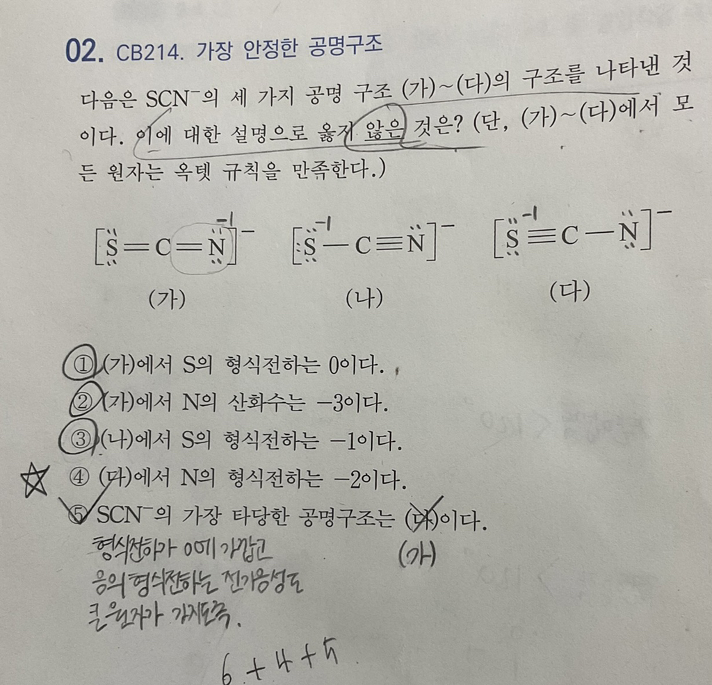 사진처럼 공명구조를 그리면 질소의 형식전하가 0이 되어서 4번의 선지와는 맞지 않지만 또 다른 공명구조가 될 수 있을 것 같아서요.