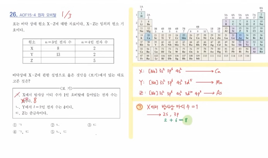 선생님 ㄱ에서 저는 2s, 2p 오비탈 “하나”에 들어있는 전자 수가 2개라서 맞다고 했다가 틀렸는데요..