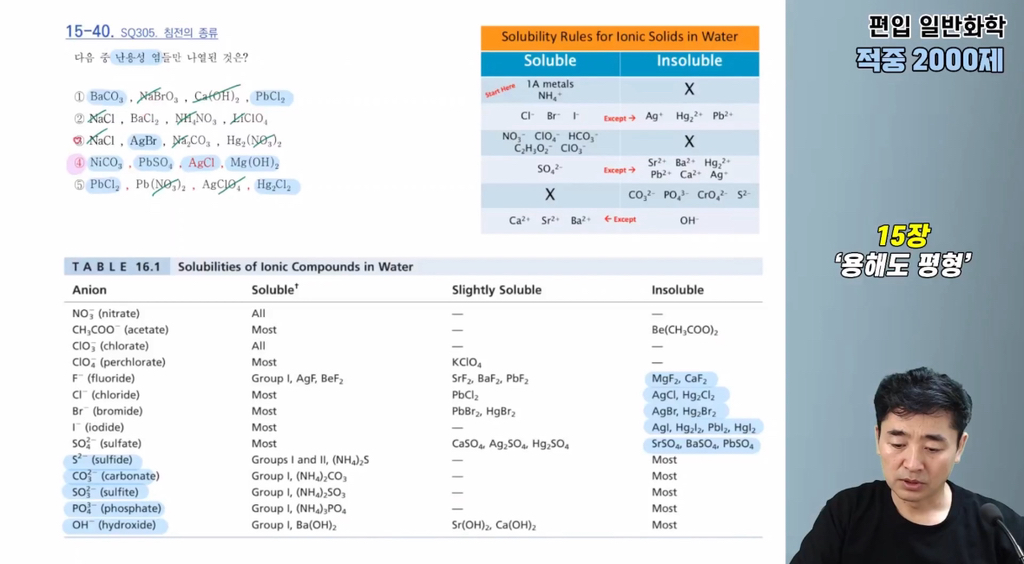 40번 1번 보기의 Ca(OH)2는 강염기라서 난용성 염에서 제외시켰는데