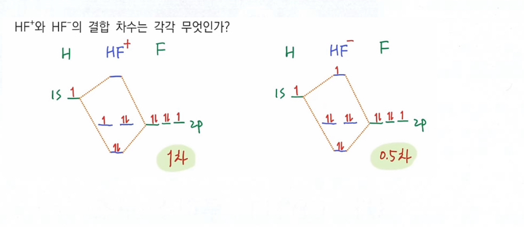 안녕하세요 교수님 홀전자 수를 따질때 비결합성 분자 오비탈에 있는 홀전자 수도 고려를 하나요? 예를 들어 HF+의 분자 오비탈에 대한 문제를 풀 때 홀전자 수를 물어보면 0개인지 1개인지 궁금합니다. 감사합니다