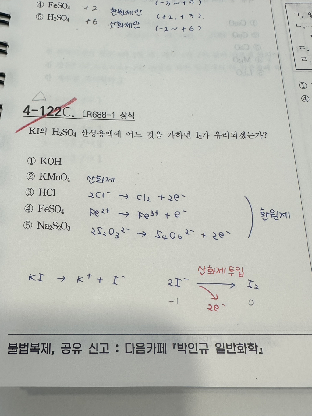 5) Na2S2O3 가 있는데 S4O6^2- + 2e- 만 보는 것