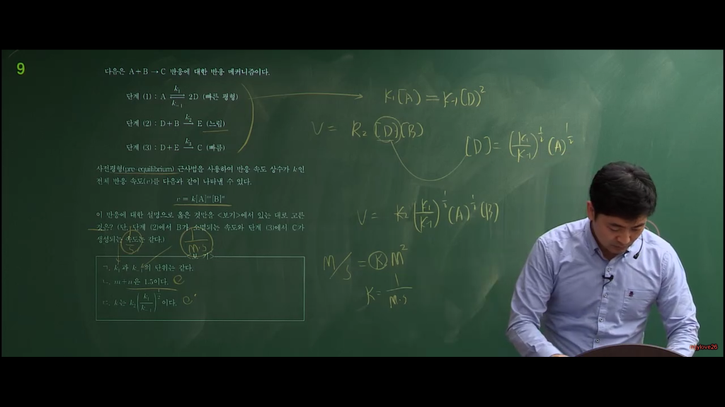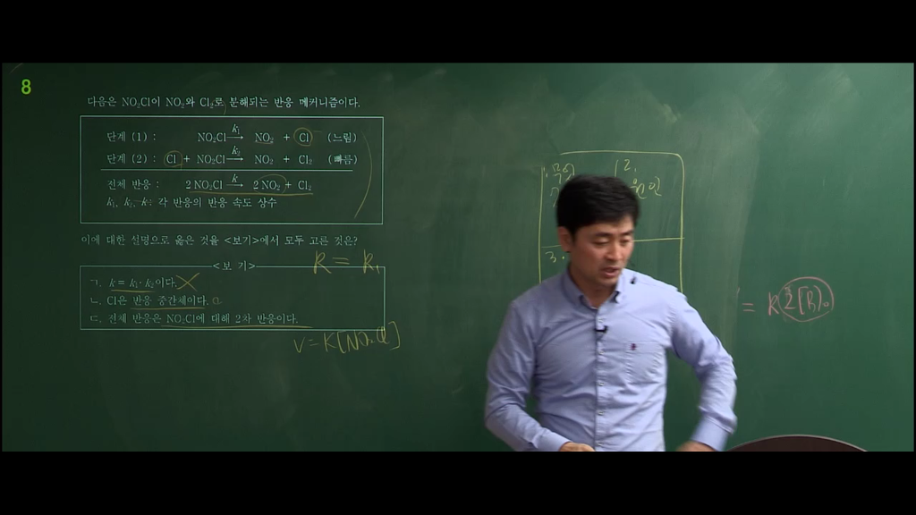 스크린샷에 나온 부분에서도 ㄷ보기에서 v=k[NO2Cl] 즉 1차반응이라고 하셨는데