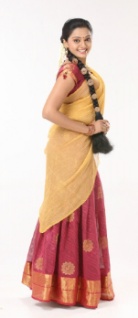 미혼 여성들이 입는 반쪽 길이의 사리입니다. 형태가 만들어져 있는 스커트에 짧은 길이의 사리를 끼워 상의만 형태를 만들어 입는 답니다. 미혼 여성들이 입는 의상이라고는 하지만, 사리에 비해 입기가 쉬울 것 같은데 진작 알았으면 하프 사리로 구매할 것을 그랬습니다. ^^;