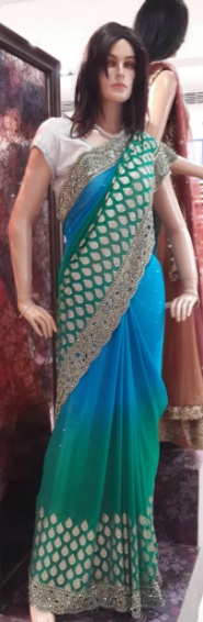 사리는 바느질을 하지 않은 옷이라는 것이 특징입니다. 하나로 된 긴 천 하나로 주름과 모양을 잡아 스커트를 만든 다음 어깨에 걸쳐 입습니다. 사리 안에는, 상의는 배꼽이 드러나는 브라우스와 하의는 속치마를 입습니다.