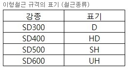 SD :KS 금속부분적용규격중,강재의구분에 따른 명칭 D : 재료의 지름