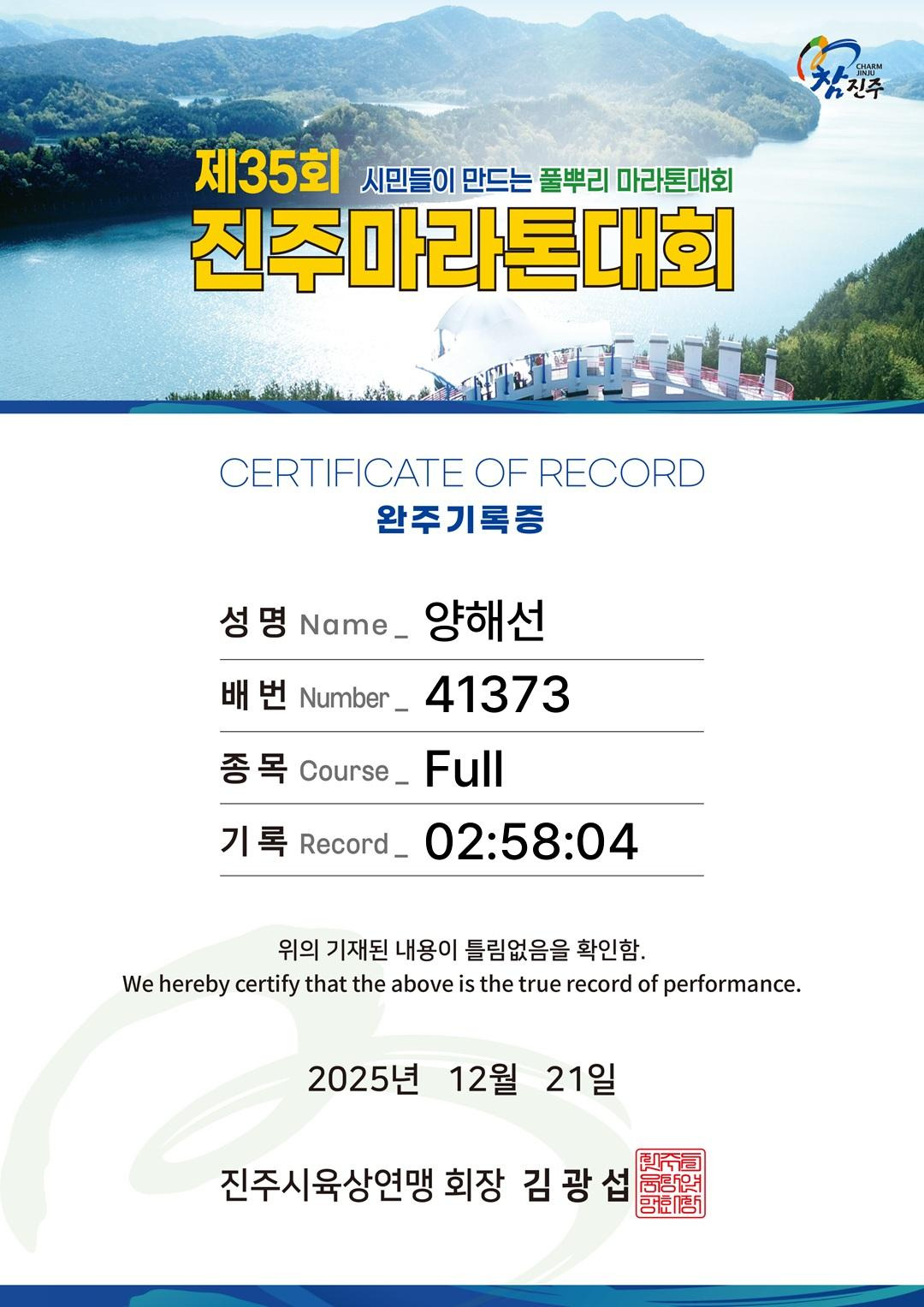2025년 12월 21일 일요일 제35회 진주 마라톤 대회