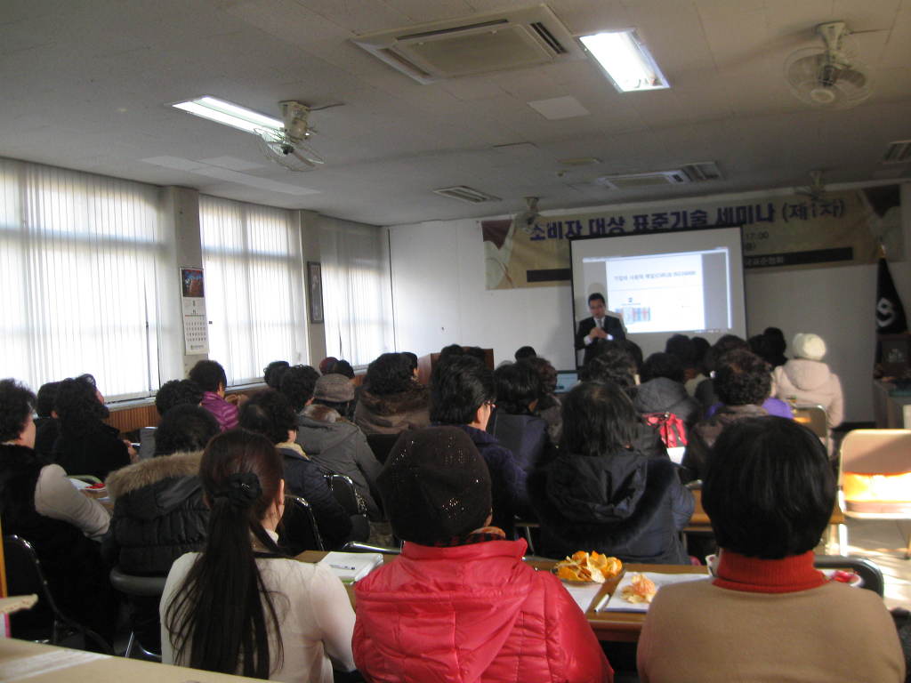 11월 26일 (화) 소비자시민모임 천안.아산 교육장에서 오후 1시 - 5시까지 소시모 회원 80여명을 대상으로 표준에 대한 인식제고 및 소비자 표준화 리더를 양성하기 위해 세미나를 개최하였다.