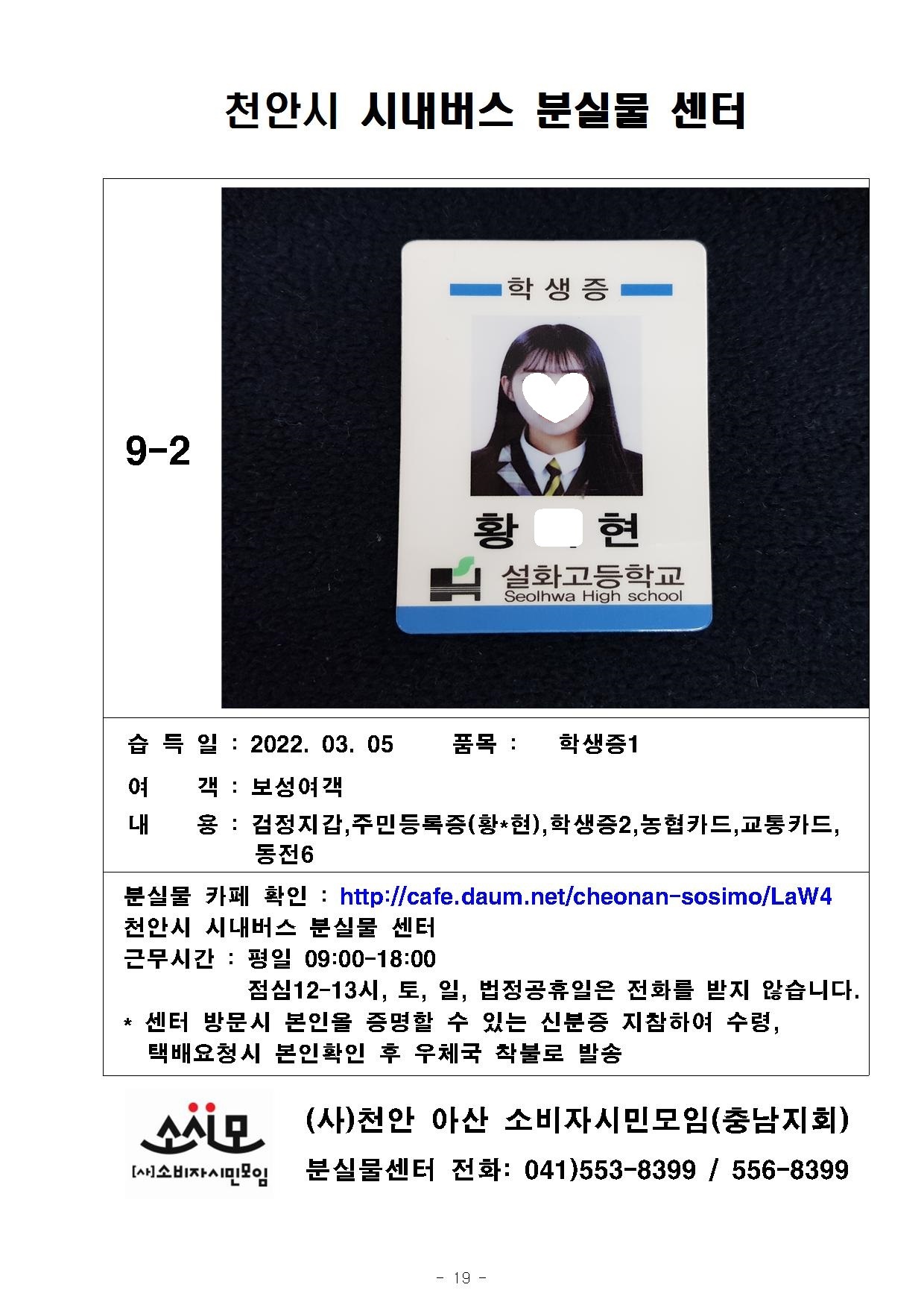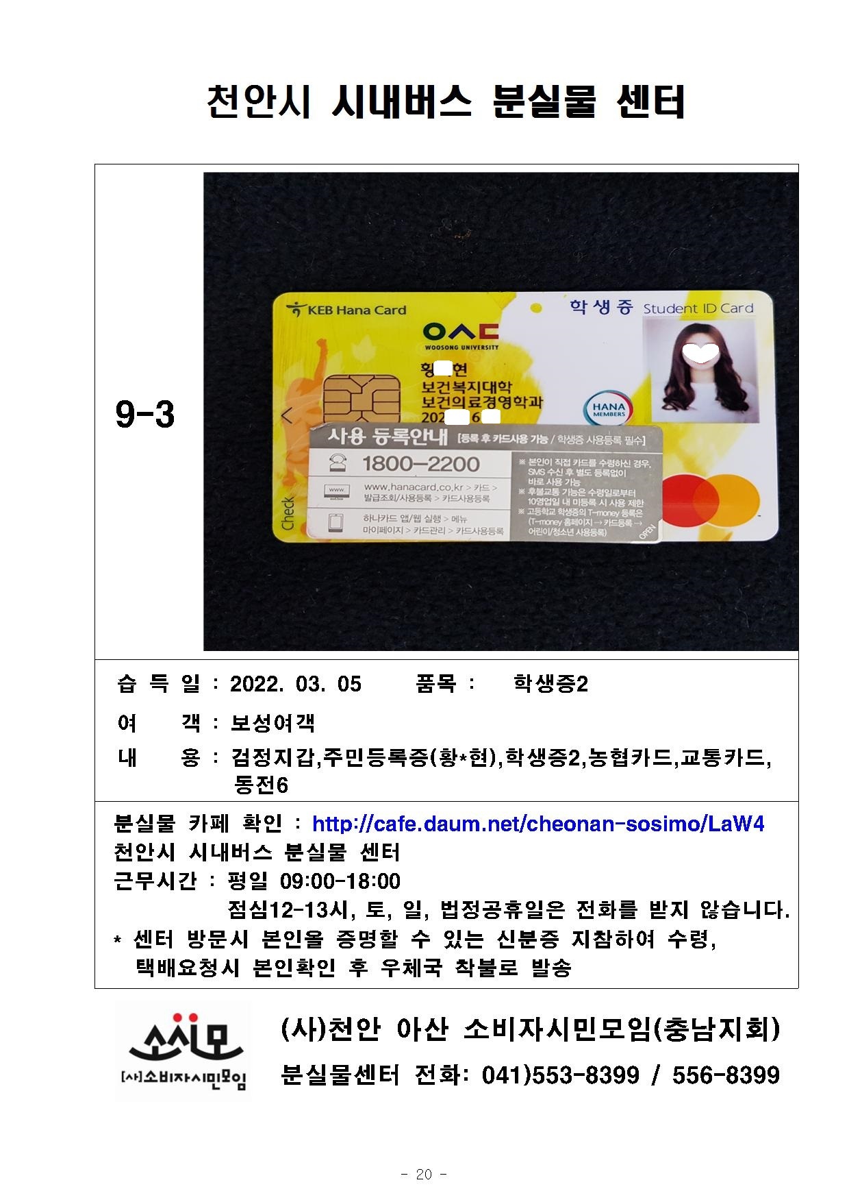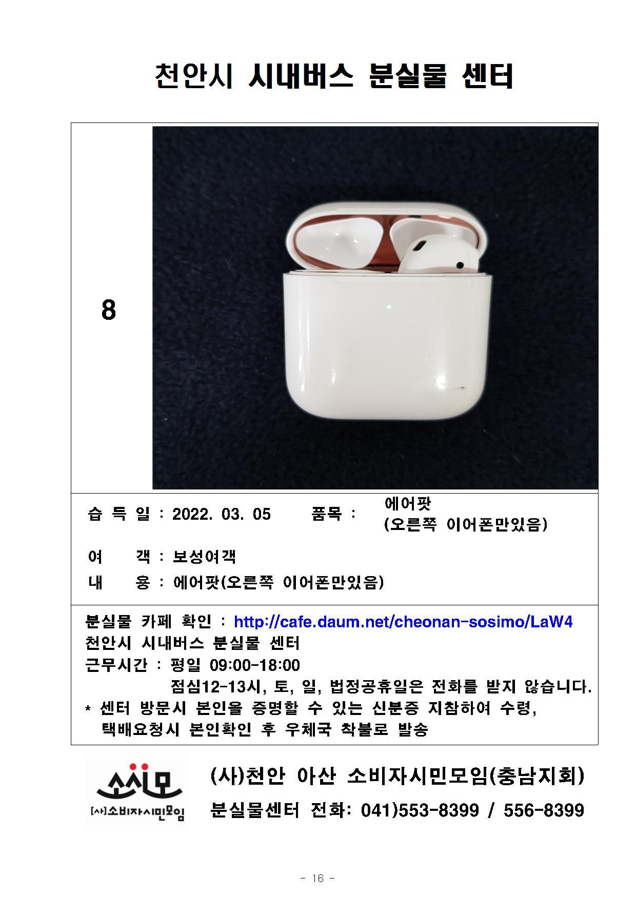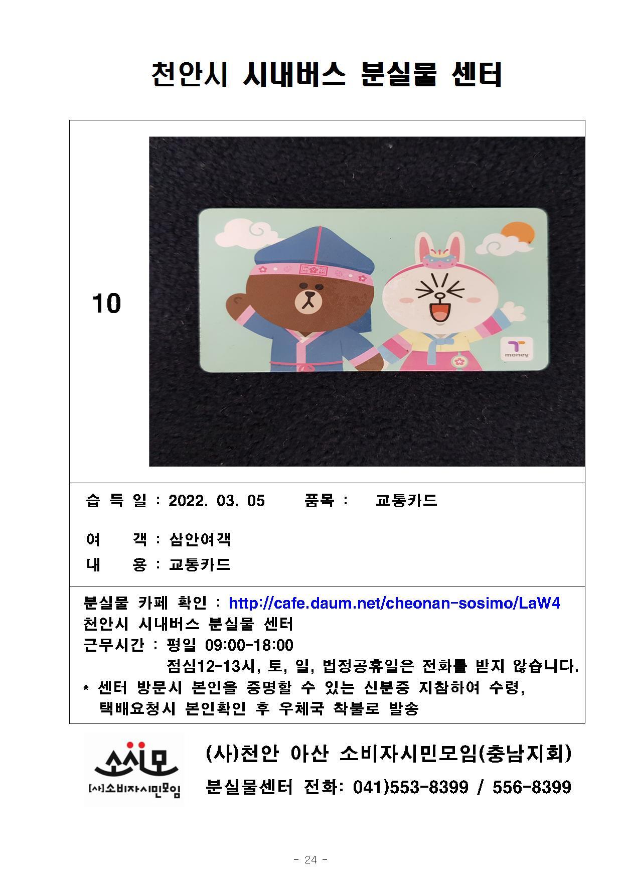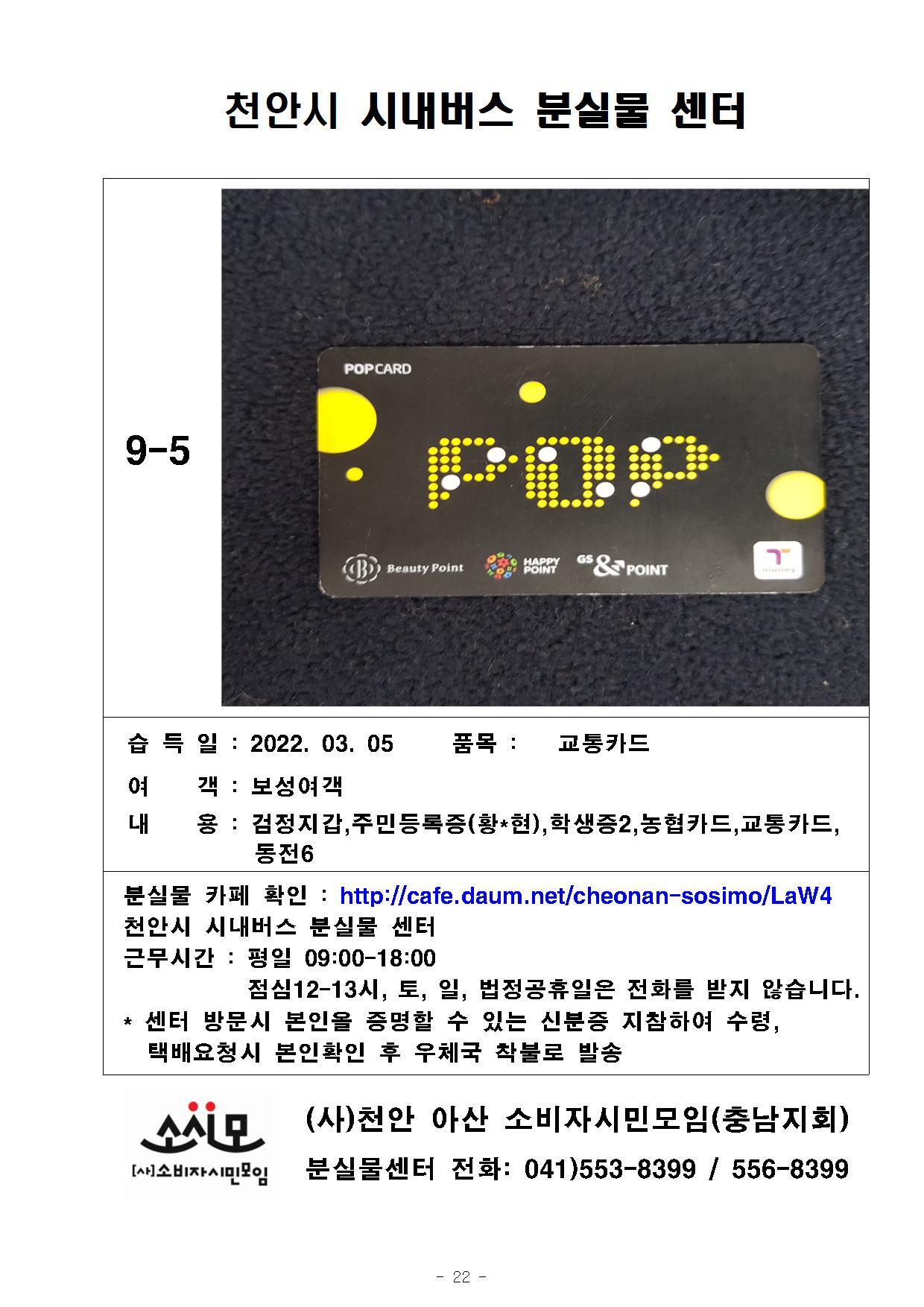2022년 03월 05일 시내버스 분실물 등록(2) 작성자소시모|작성시간22.03.07|조회수146 목록 댓글 0 글자크기 작게가 글자크기 크게가 다음검색 현재 게시글 추가 기능 열기 북마크 공유하기 신고 센터로 신고 댓글 댓글 0 댓글쓰기 답글쓰기 댓글 리스트