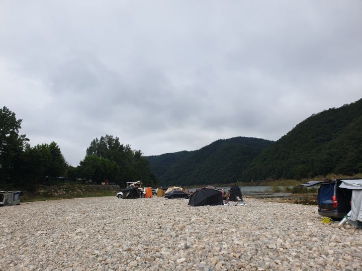 오후늦게 출발해서 홍천모곡에 야영지에서 텐트 힘들게 치고나니 해가 니웃니웃 해진다