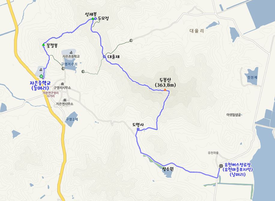자은중학교-두모산-대율재-두봉산-도명사-유천마을