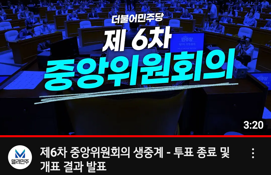 [델리민주] 더불어민주당 최고위원회의/제6차 중앙위원회 개회선언 및 의결안건 상정 /...개표 결과 발표/..(2024.08.12) 작성자자연인jina(안산)|작성시간24.08.12|조회수41 목록 댓글 0 글자크기 작게가 글자크기 크게가 https://www.youtube.com/live/5Zph7yR18pI?si=5xqW_H57H-FC-ZCJ https://www.youtube.com/live/fR8hVymwMIM?si=xan96I77TOkI8JnR https://www.youtube.com/live/_HzDa7q-mIQ?si=SLm_2fP-oJn5tjLs https://youtube.com/shorts/Zg4geTC_GzY?si=nmTCqLajjrwzoofW 다음검색 현재 게시글 추가 기능 열기 북마크 공유하기 신고 센터로 신고 댓글 댓글 0 댓글쓰기 답글쓰기 댓글 리스트