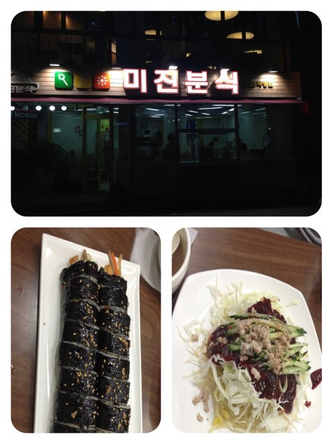 작성자ll나만바라봐ll 작성시간 13.08.02 간판은 미진분식인데요?? 진미분식인가요?ㅎㅎ 김밥 ~깨소금듬뿍들어가고~~맛나 보여용~~옆에는 샐러드죠? ㅎ