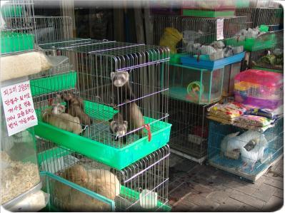 각종 관상어는 물론 수족관과 앵무새 또 햄스터, 악어와 같은 파충류까지 팔고 있더라구요..