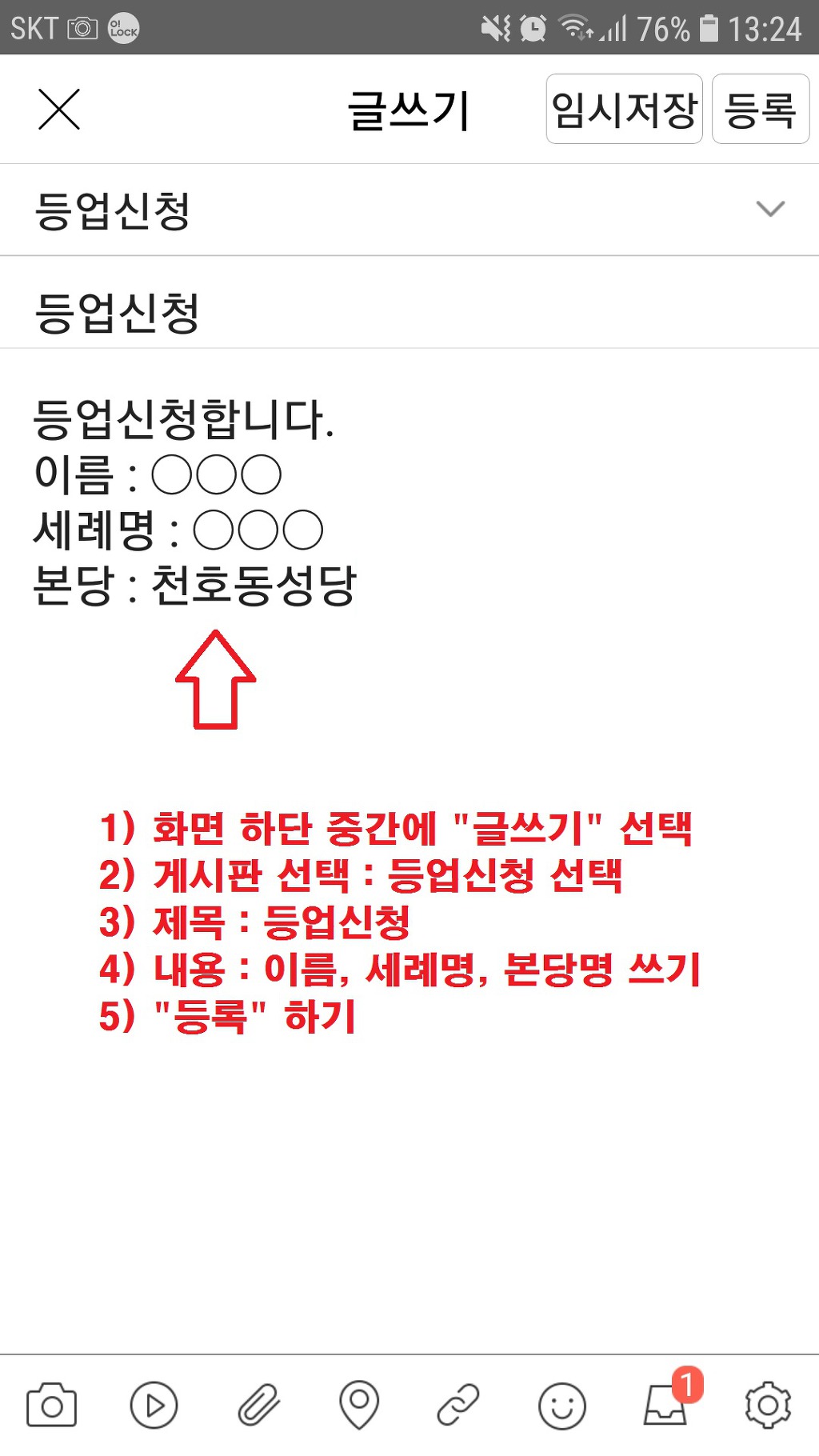 (공지)회원 가입 시 유의사항 작성자꼬보|작성시간19.10.17|조회수535 목록 댓글 8 글자크기 작게가 글자크기 크게가 회원 가입하신 후에 "등업신청 메뉴"에 반드시 아래 내용으로 등업신청해주세요.그래야 읽기, 쓰기 권한을 드립니다.1. 소속 본당명2. 성명(실명), 세례명고맙습니다. 다음검색 현재 게시글 추가 기능 열기 북마크 공유하기 신고 센터로 신고 댓글 댓글 8 댓글쓰기 답글쓰기 댓글 리스트 작성자니체시오 | 작성시간 19.12.22 등업신청합니다천호동성당 이광재니체시오 010 4981 4256 작성자레드디어 | 작성시간 19.12.23 등업신청합니다 작성자어윤석(효주아녜스) | 작성시간 20.01.01 등업신청합니다 작성자레지나 | 작성시간 20.01.03 등업신청합니다.... 작성자sera | 작성시간 20.08.17 등업신청 합니다 댓글 전체보기