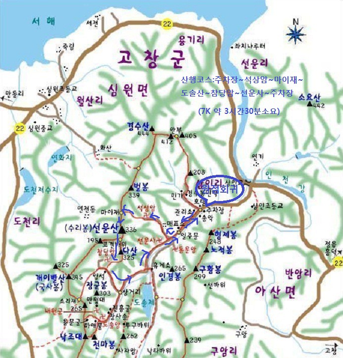 3. 산행코스 :주차장→ 석상암→ 마이재→ 도솔산(선운산)→참당암→ 선운산→ 주차장(원점회귀 )7k 3시간 30분소요 예정