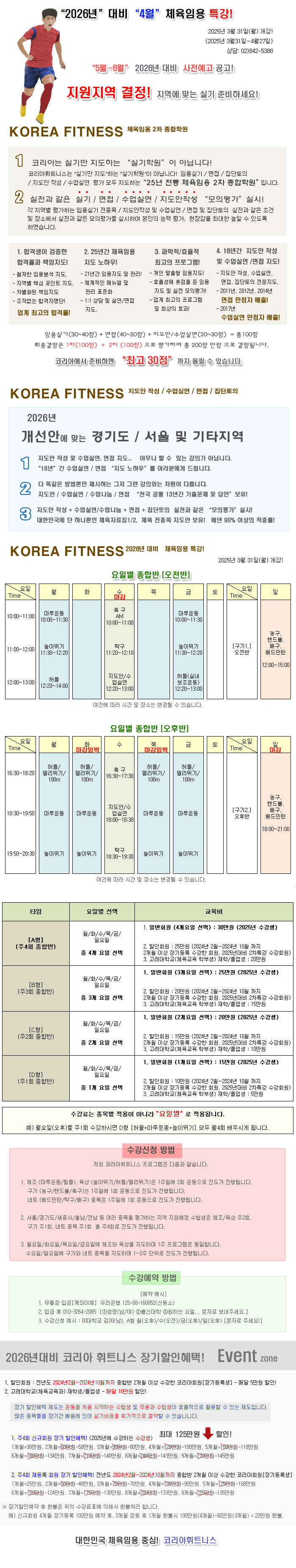 | 2025학년도 중등 임용 최종합격자 합격수기 (인천지역_이호혁) <인사말> 안녕하십니까. 2025학년도 중등 임용 최종합격자 (인천 지역) 이호혁입니다. 먼저 합격수기를 쓰기에 앞서, 정말 많은 가르침과 도움을 주신 원장님과 코리아휘트니스 학원에서 함께 했던 모든 수험생 선생님들께 함께해서 행복했고 감사하다는 말씀을 전하고 싶습니다. 그리고 더불어, 제가 쓴 합격수기를 읽으시는 분들에게 조금이나마 도움이 되고자 하는 마음으로 솔직하고 구체적으로 합격수기를 써내려 가보겠습니다. <본인 소개> 먼저 저에 대한 소개를 말씀드리는 것이 합격과 관련하여 제가 하고자하는 이야기가 잘 전달될 것 같아 간단한 소개를 먼저 해보겠습니다. 저는 총 2023, 2024, 2025년 3번의 시험 끝에 합격을 하였습니다. 2023, 2024년 모두 1차 합격 후 최종 탈락을 하였고, 올해 감사하게도 최종합격을 하였습니다. 누군가는 3번의 시험을 보는 내내 1차 합격을 이루었다는 점에서 대단하다고 말씀해주시지만 제 스스로는 매번 2차 시험에서 미끄러졌다는 점이 부끄러운 과거였고, 그 결과 2차 시험의 중요성에 대해 그 누구보다 뼈저리게 느끼고 있습니다. <시험 성적 및 시험 후기> 저는 앞서 말씀 드린 바와 같이 최종합격을 위해서는 2차 성적이 정말 중요하고, 2차를 어떻게 준비하느냐에 따라 최종합격의 여부가 달려있다고 생각합니다. 이러한 생각에 대한 제 나름대로 근거는, 제가 지금까지 받았던 2차 성적과 학원 수강 기간이 보여주고 있습니다. 다음은 총 3번의 시험 동안 제가 받았던 2차 성적과 학원 수강 기간입니다. 참고하시며 읽어보시면 이해가 빠를 것이라 생각하여 부끄럽지만 공개해봅니다. ● 2023년 - 초수 때에는 2차 시험장에 준비를 거의 하고 가지 않았기 때문에 처참한 점수가 당연한 결과로 받아들여졌습니다. 준비를 하지 않았던 이유로는, 제가 초수였기에 경험 삼아 준비해보는 심경과 더불어 제가 합격할 것이라고 생각조차 하지 못했는데 덜컥 붙어버렸습니다. 또한 1차 점수가 커트로 붙었기에 희망을 접고 ‘2차 시험장에서 경험삼아 시험보고 오자‘ 생각으로 시험을 보고 왔습니다. 지금 생각하면 이때가 가장 아둔했던 시기라고 생각합니다. 여러 초수 선생님들은 저와 같은 시행착오를 겪지 않으시고, 1차 준비와 더불어 2차 준비도 철저히 하셨으면 좋겠습니다. ● 2024년 - 재수 때에는 2024년 9월 말에 발목인대 파열이라는 부상이 발생했습니다. 그래서 정상적인 컨디션으로 실기를 준비하지 못하였고, 실기장에 가는 날까지도 통증이 있었기에 실기점수가 다소 낮게 나왔습니다. 그리고 면접에서 또한 내용 측면에서 미흡한 점도 있었고, 너무나 많이 떨었던 점이 낮은 점수를 받았던 요인이었습니다. 실기 및 면접에서 낮은 점수를 받은 것에 대한 총괄적인 이유는 원장님의 가르침은 충분했지만, 제 그릇이 아직 부족하고 준비가 덜 됐던 시기라고 생각합니다. 그러나 수업실연 점수의 경우에는 19점이라는 고득점이 나왔고, 이는 코리아휘트니스의 효과라고 확신합니다. 특히 일부 교과서에서도 많이 다루지 않은 소프트볼 투구 동작 중 슬링샷 피칭, 윈드밀 피칭의 명칭과 해당 동작에 대한 세부사항을 원장님의 가르침과 더불어 원장님께서 직접 각종 교과서를 집약하여 만드신 학원 교재로 공부하고, 이를 바탕으로 수업실연 시험에서 ‘다른 수험생들은 모를 테지만 나는 알고 있다.’라는 자신감을 가지고 실연했던 것이 높은 점수의 비결이 아니었나 생각합니다. ● 2025년 - 2024년 5월~8월까지 약 4개월 동안 미리 준비했던 실기라 지금까지의 점수 중 가장 높은 점수를 받을 수 있었습니다. 그리고 실기를 미리 준비를 했기 때문에 1차 시험 이후에 여유롭게 면접과 수업실연에 중점을 두어 더 집중적으로 준비를 할 수 있었습니다. 그리고 결정적으로 높은 점수를 받았던 면접은 원장님의 세밀한 지도와 학원 내에서 진행된 스터디를 바탕으로 숙달한 결과, 좋은 점수를 받았습니다. 그러나 수업실연 점수의 경우 감소한 결과가 나타났는데, 이는 올해 시험을 겪은 분들이라면 이해하실 것이라고 생각합니다. 올해 수업실연 문제가 다소 예상치 못한 내용이 나와 많이 당황했고, 특히 별로 중요한 내용도 아닌 것 같은 ‘계수기’ 라는 학습 자료에 꽂혀서 다른 조건들을 많이 놓쳤던 것 같습니다. 그래서 2024년보다는 수업실연 점수가 다소 낮은 점수가 나왔다고 생각합니다. <2차 시험 준비> 2차 시험을 세 번 동안 준비해본 경험을 바탕으로, 2차 시험을 어떻게 준비해야 하는지와 관련된 저의 개인적인 생각을 솔직하게 말씀드리고자 합니다. 지극히 저의 개인적인 견해이며, 그냥 참고만 해서 봐주시면 감사하겠습니다. 체육 교과는 1차 결과가 아무리 좋더라도 뒤집어질 수 있는 확률이 높기 때문에 최선을 다해야하며, 1차 결과가 커트 점수이더라도 충분히 뒤집을 수 있는 가능성이 높기 때문에 최선을 다해야합니다. 그렇기 때문에 중등 임용 체육 과목의 2차 시험에 대한 중요도는 그 여느 과목보다 높고 마지막 구부능선이라고 생각합니다. 이렇듯 제가 중요하게 생각하는 2차 시험과 관련하