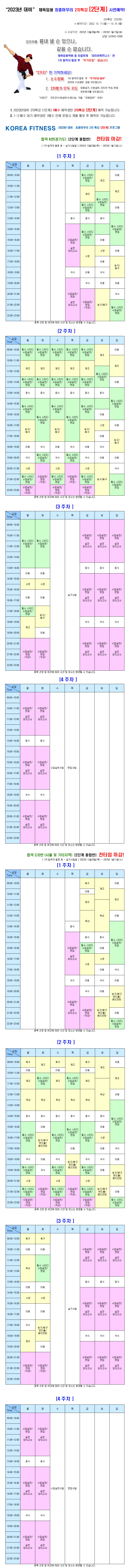 "2023년" 대비 최종마무리 2차특강![2단계] [프로그램 확정!] 작성자카페운영자|작성시간22.07.29|조회수1,994 목록 댓글 4 글자크기 작게가 글자크기 크게가 공지 코리아휘트니스 2차특강 [2단계] 수강생은 2022년 12월29일(목) 오후 1시까지 코리아로 오세요. 수업실연 및 면접, 모의고사 수업 바로 진행합니다. 다음검색 현재 게시글 추가 기능 열기 북마크 공유하기 신고 센터로 신고 댓글 댓글 4 댓글쓰기 답글쓰기 댓글 리스트 해당 댓글은 작성자와 운영진만 볼 수 있습니다. 해당 댓글은 작성자와 운영진만 볼 수 있습니다. 해당 댓글은 작성자와 운영진만 볼 수 있습니다. 해당 댓글은 작성자와 운영진만 볼 수 있습니다. 댓글 전체보기