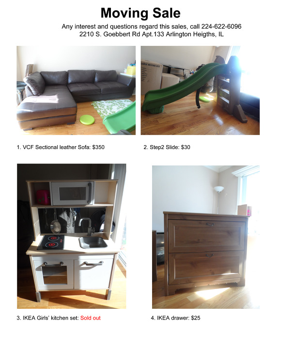 Moving Sale!! Urgent! 오늘까지만 세일합니다. 작성자Gravis stella|작성시간14.02.11|조회수567 목록 댓글 4 글자크기 작게가 글자크기 크게가 Email: yim0930@gmail.comCell: 224-622-6096 다음검색 현재 게시글 추가 기능 열기 북마크 신고 센터로 신고 댓글 댓글 4 댓글쓰기 답글쓰기 댓글 리스트 작성자빈하늘 | 작성시간 14.02.12 전화도 하고 문자도 보내고 했는데 답이 없습니다. 신발장 관심 있습니다. 작성자Gravis stella 작성자 본인 여부 작성자 | 작성시간 14.02.12 연락이 늦어 죄송합니다. 신발장은 어제 팔렸습니다. 작성자밸뷰 | 작성시간 14.02.13 혹시 딜리버리 가능한지요. 작성자Gravis stella 작성자 본인 여부 작성자 | 작성시간 14.02.13 예 가능합니다. 댓글 전체보기