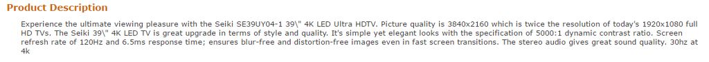 1년 정도 쓴 Seiki의 39인치 4K (3860 * 2160) 티비 팝니다! (아래에 포함된것 전부 포함해서 $180, 리모콘은 없습니다. 리모콘 필요하시면 아마존에서 15불에 파는것 사서 쓰셔야 돼요~~)