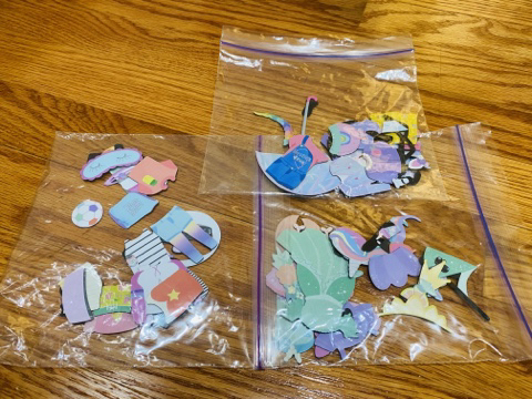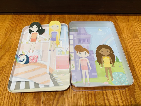 1. Dress-up 자석인형놀이 ($7): 자석인형 3명과 옷, 악세사리등이 있어요. 여행때 한번 가지고 놀아서 아주 깨끗합니다.