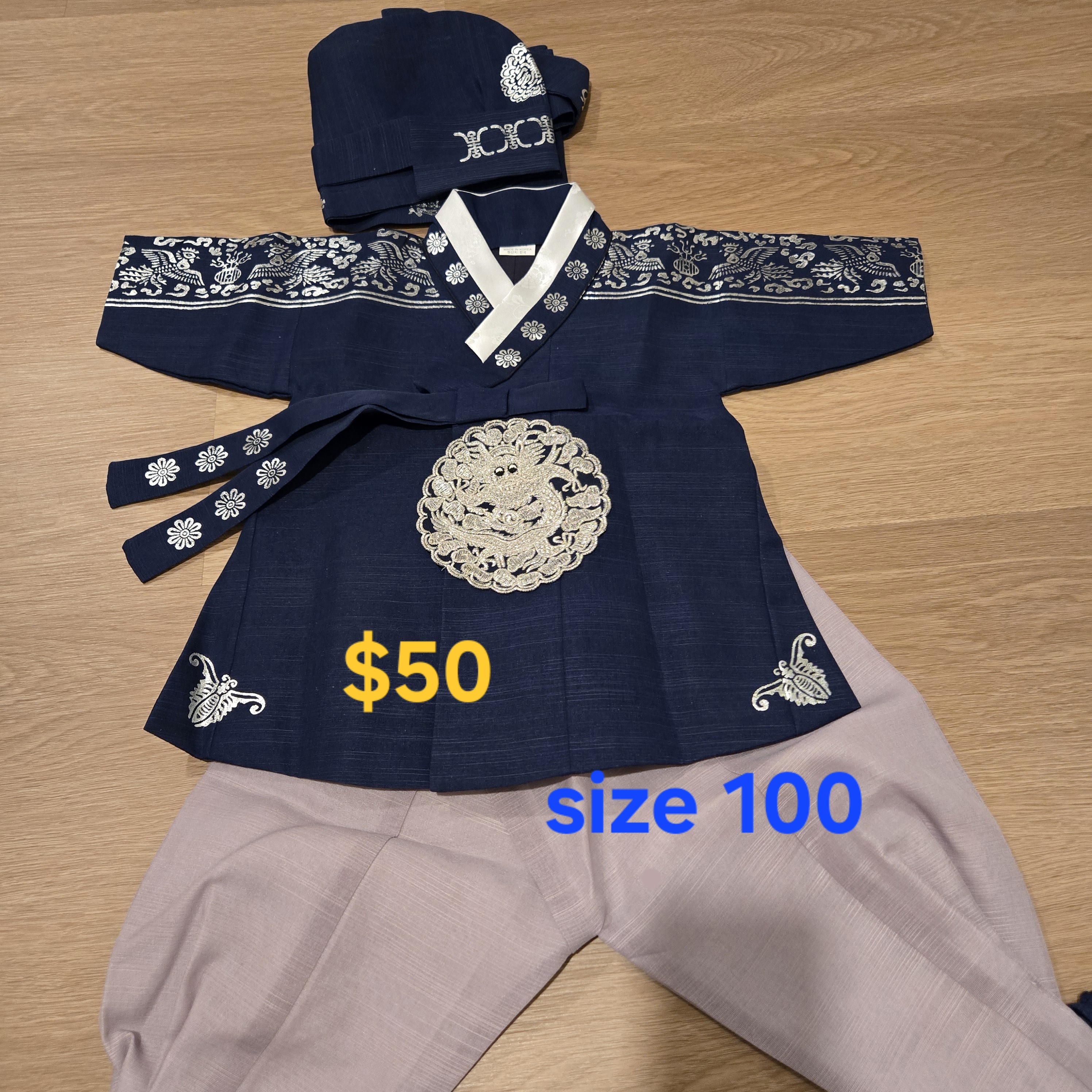 남색 한복은 백일용 남아 한복입니다. 120불 etsy에서 구매