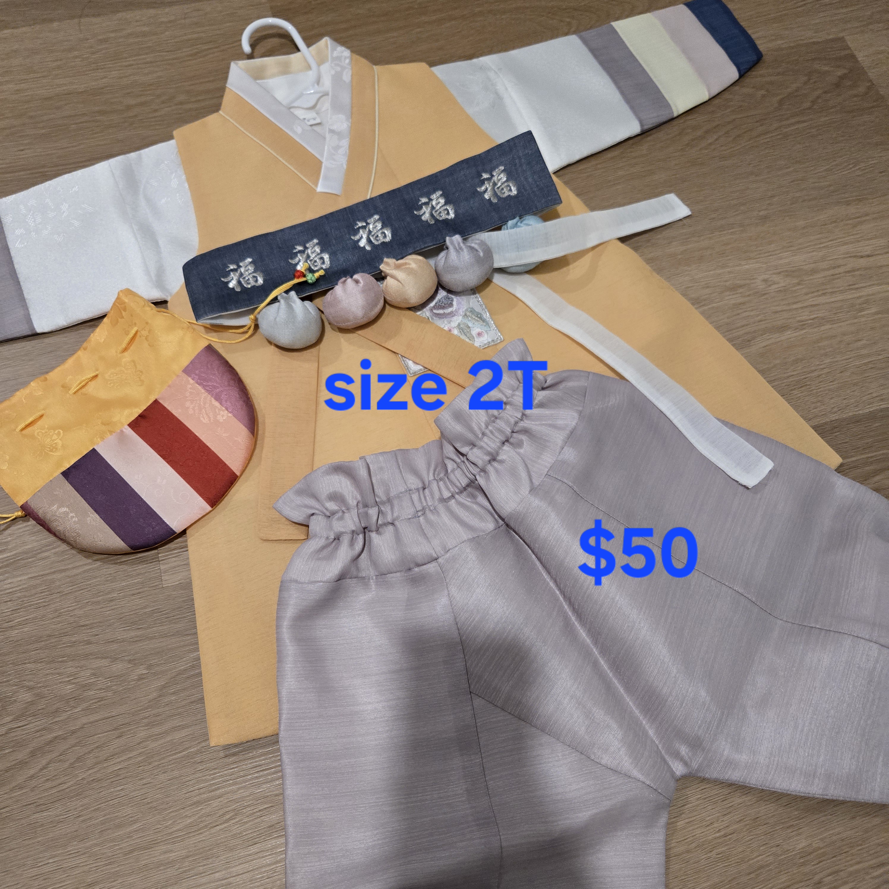 노란 한복은 2살 남아 한복이고요 (악세서리 모두 해서 12만원 상당)
