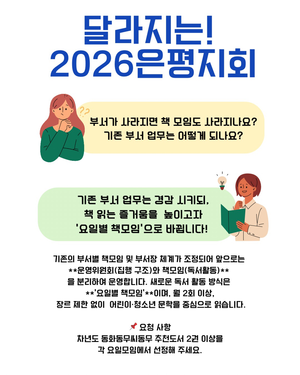 기존 부서별 책모임에서 ‘요일별 책모임’ 으로 전환됩니다.
