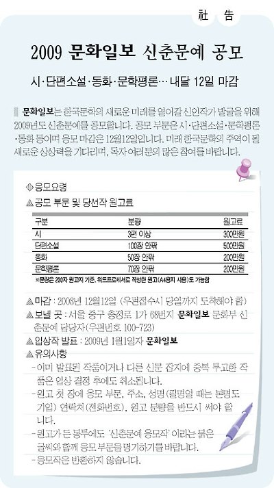 [신춘문예]문화일보 신춘문예 작성자문제아|작성시간08.11.14|조회수174 목록 댓글 0 글자크기 작게가 글자크기 크게가 . 다음검색 현재 게시글 추가 기능 열기 북마크 공유하기 신고 센터로 신고 댓글 댓글 0 댓글쓰기 답글쓰기 댓글 리스트