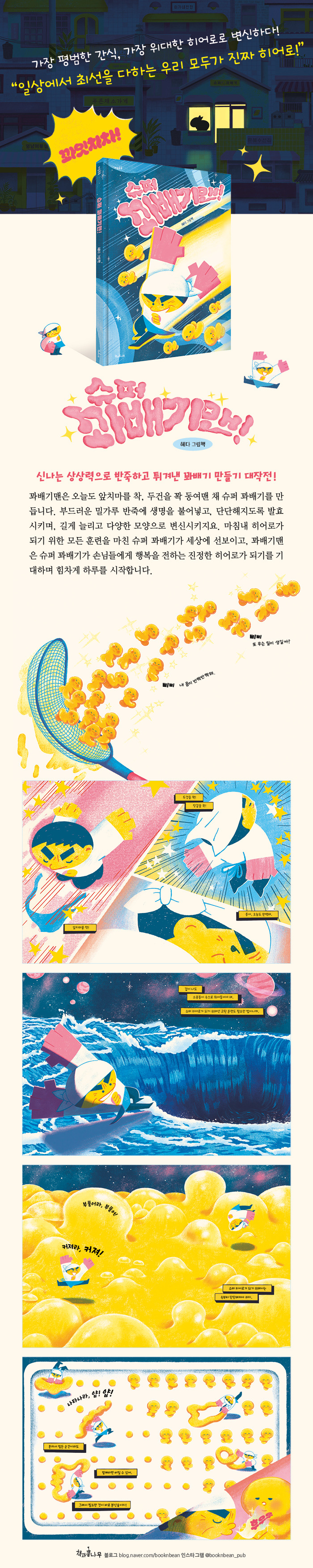 『슈퍼 꽈배기맨!』은 꽈배기가 되는 과정을 슈퍼 히어로의 훈련에 비유하여, 일상에서 묵묵히 최선을 다하는 우리 모두가 서로의 삶을 밝히는 진짜 히어로라는 메시지를 전하는 그림책입니다.