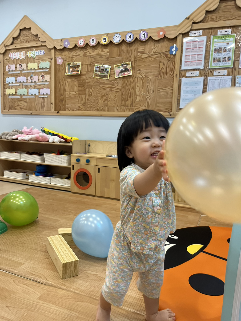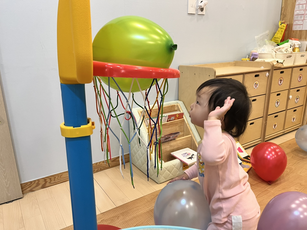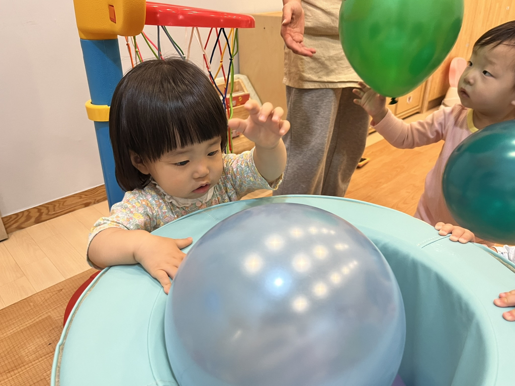 풍선을 위로 통통 튀기기도 하고, 골대에 공을 넣으며
