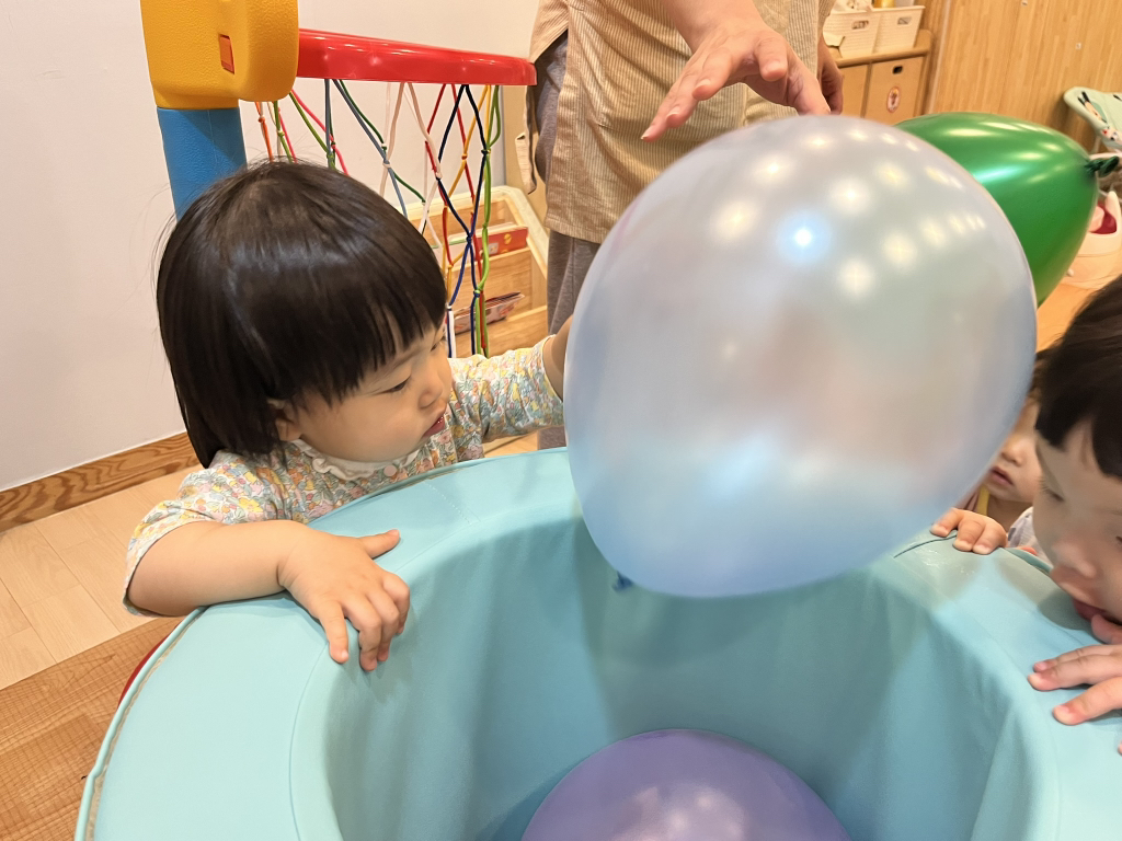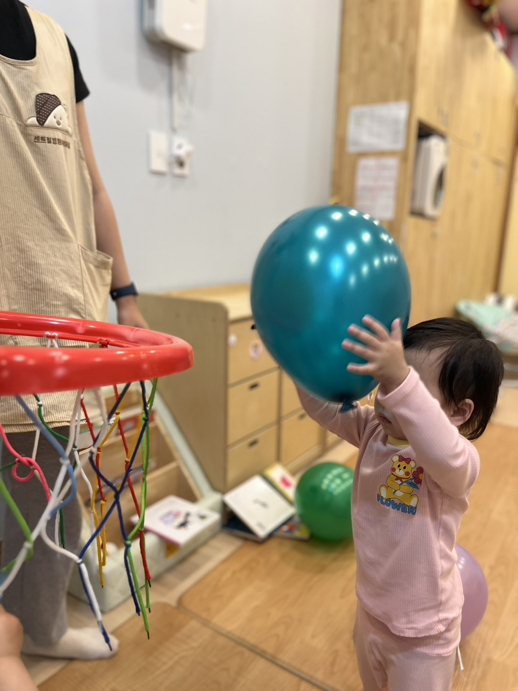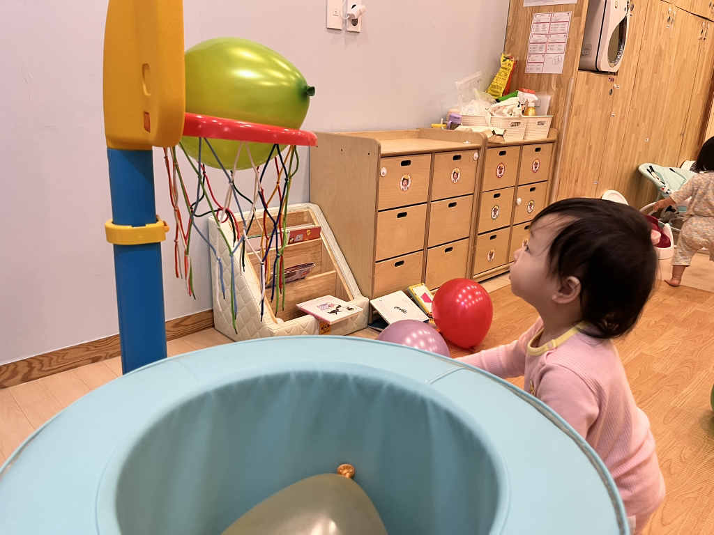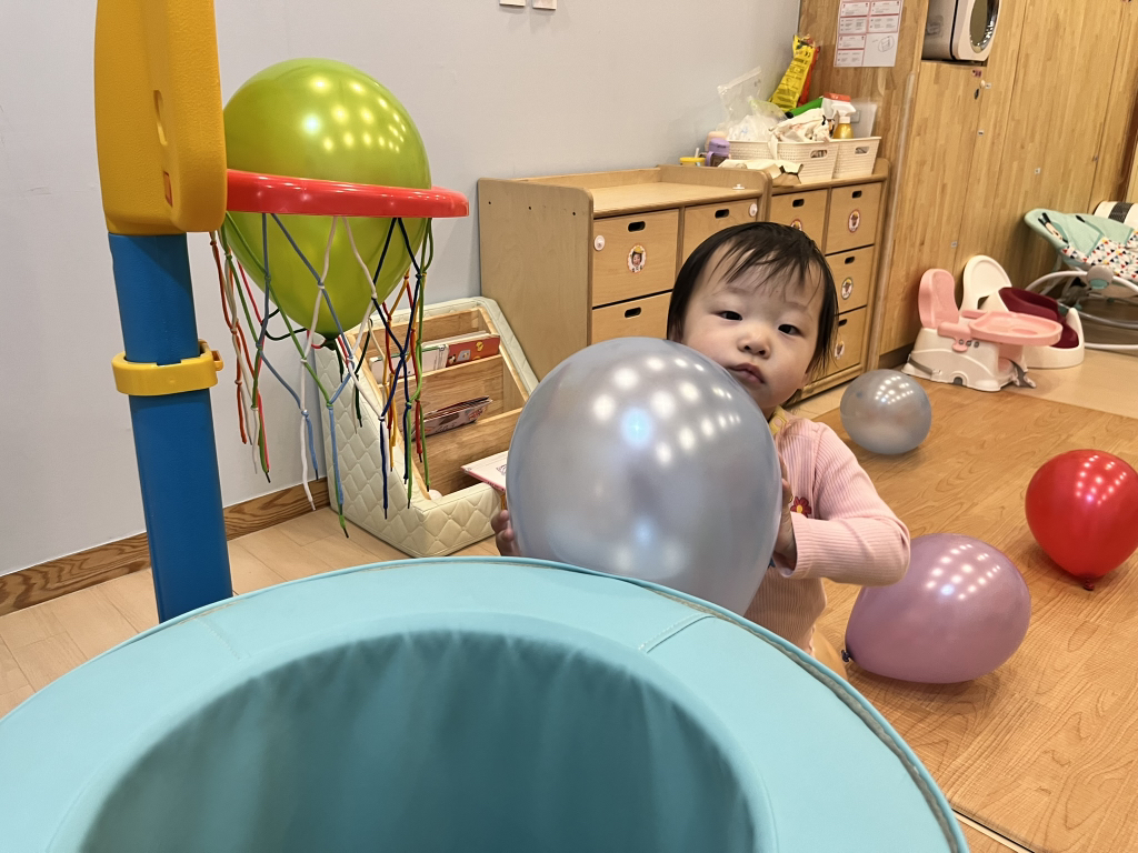 풍선을 위로 통통 튀기기도 하고, 골대에 공을 넣으며