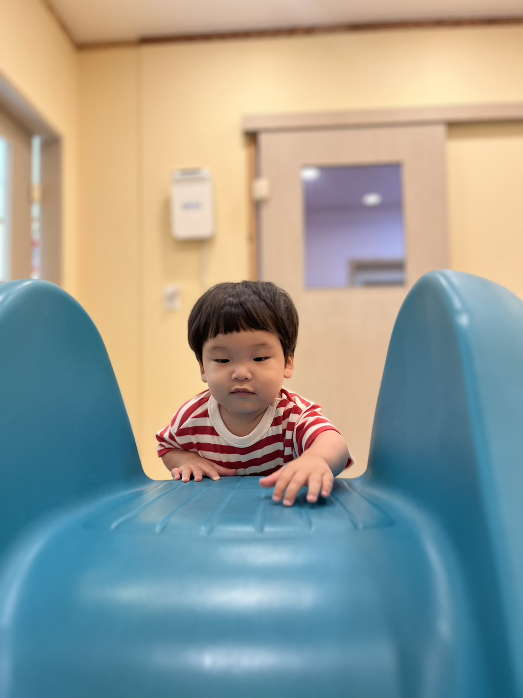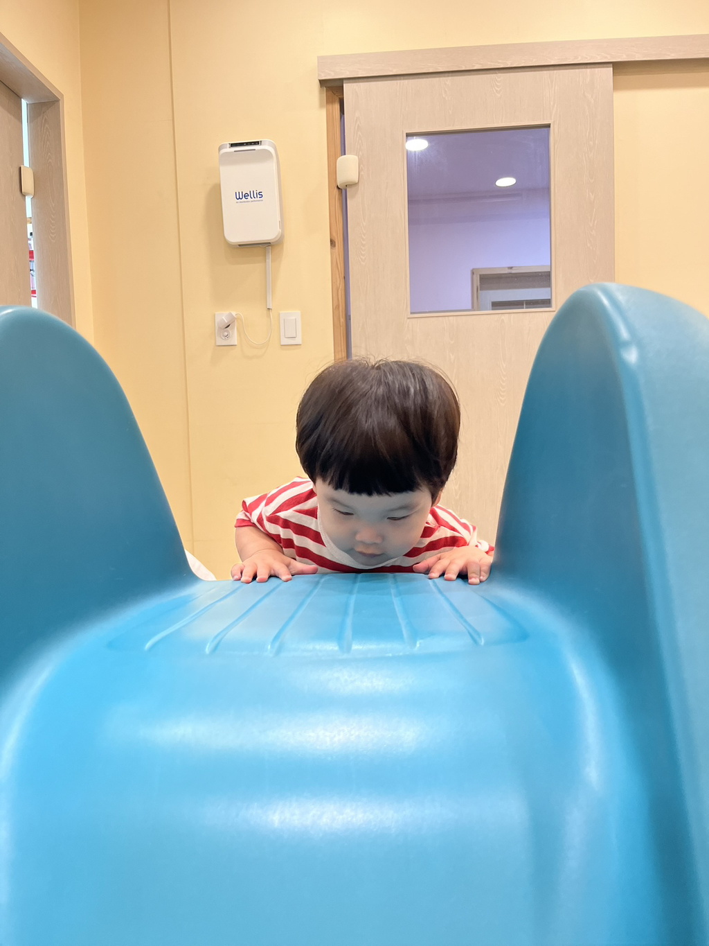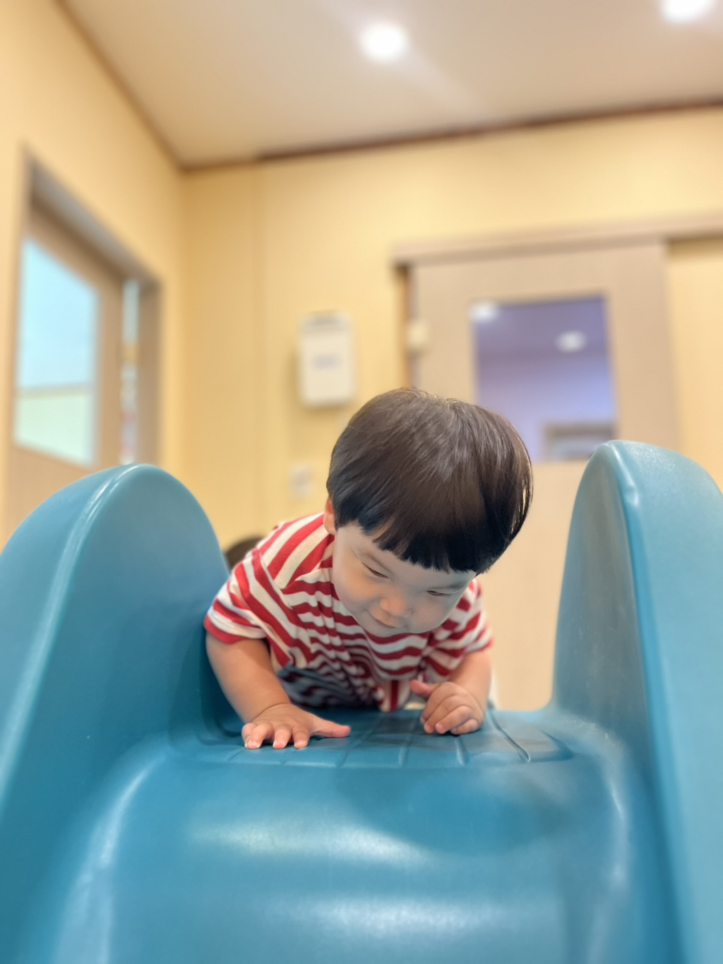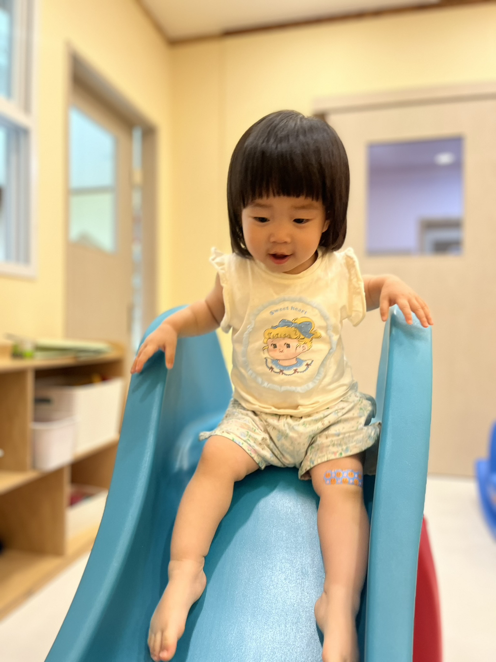 스스로 계단을 올라 미끄럼틀을 신나게 타보는 지유에요~