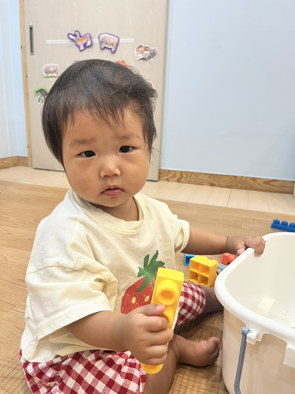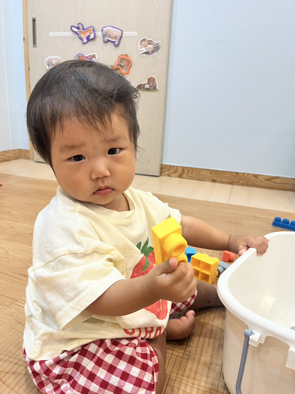 레고 블록에 관심을 보이는 주아~