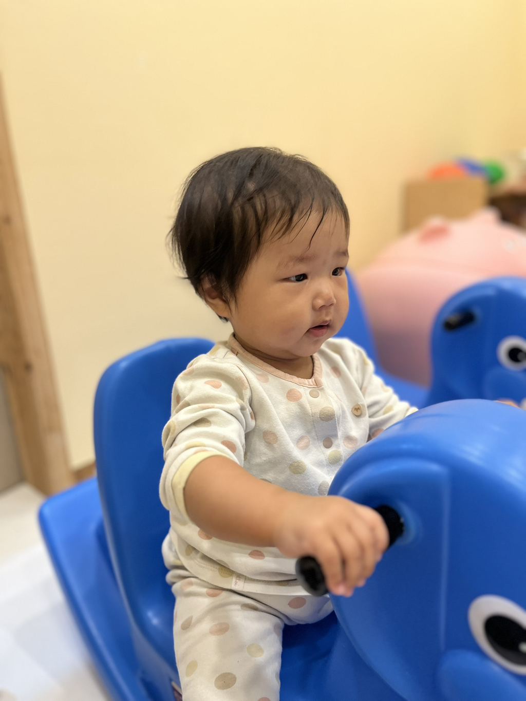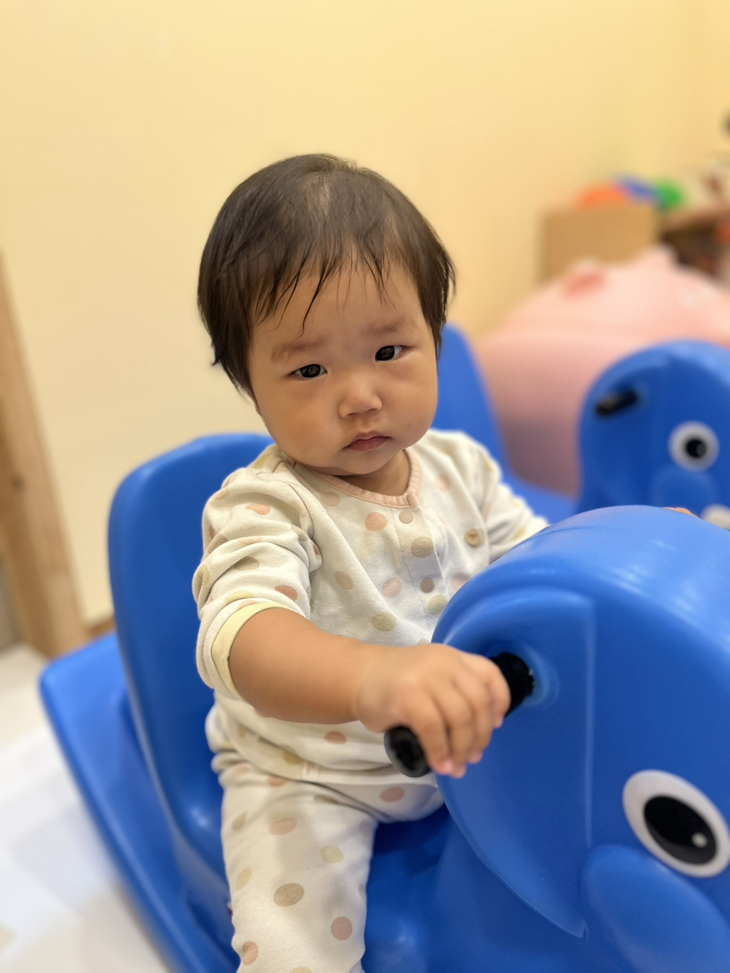 흔들 코끼리에 앉혀주었더니