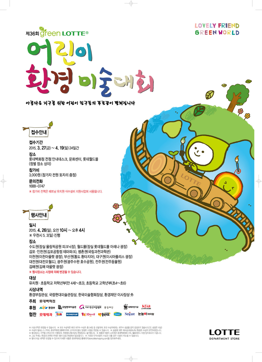제36회 롯데 어린이 환경 미술대회 작성자엠필맘|작성시간15.04.09|조회수41 목록 댓글 0 글자크기 작게가 글자크기 크게가 다음검색 현재 게시글 추가 기능 열기 북마크 공유하기 신고 센터로 신고 댓글 댓글 0 댓글쓰기 답글쓰기 댓글 리스트