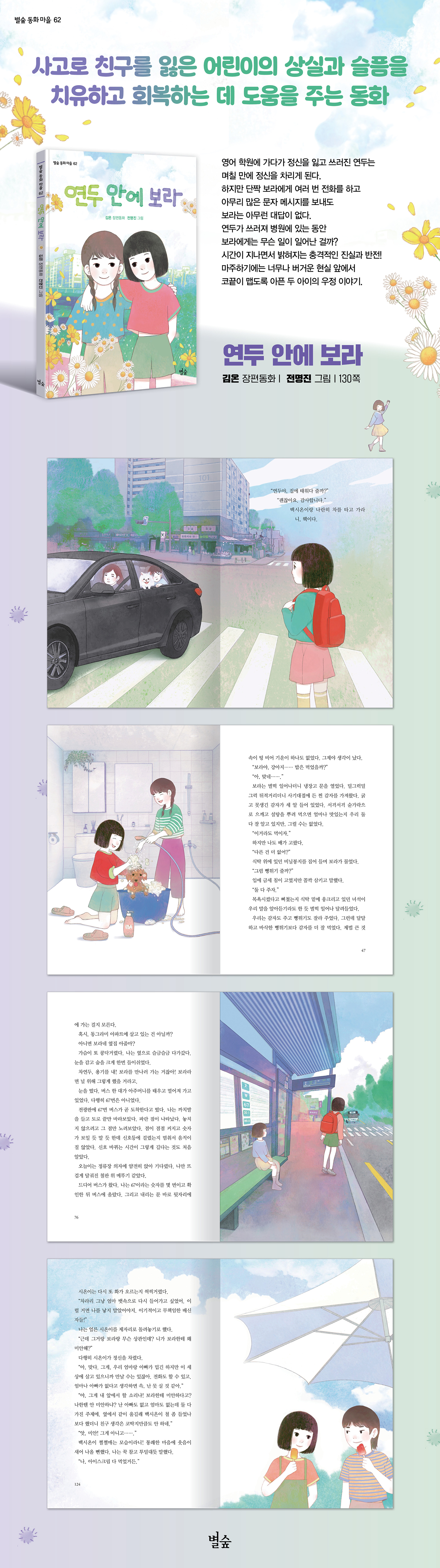 별숲에서 출간한 김온의 장편동화 《연두 안에 보라》는 단짝 친구 보라의 죽음으로 충격과 상실감에 빠진 아이 연두가 마음속 상처를 치유하고 다시 힘내어 살아갈 힘을 회복해 나가는 이야기다.