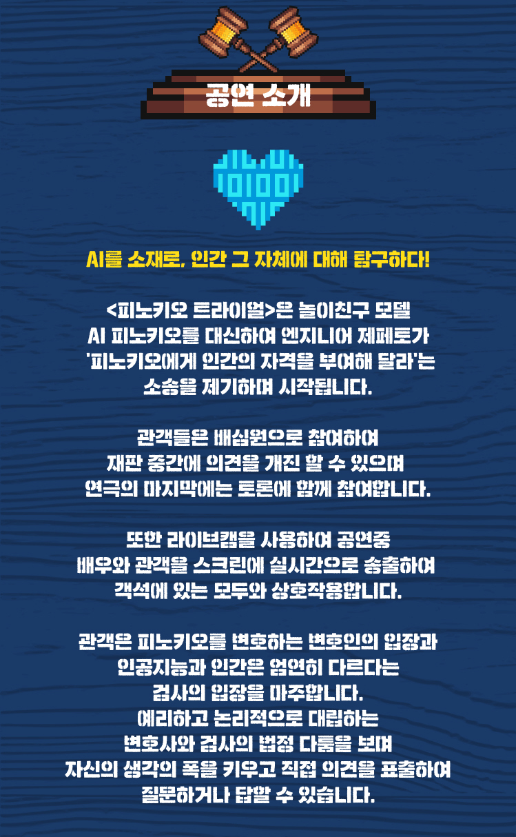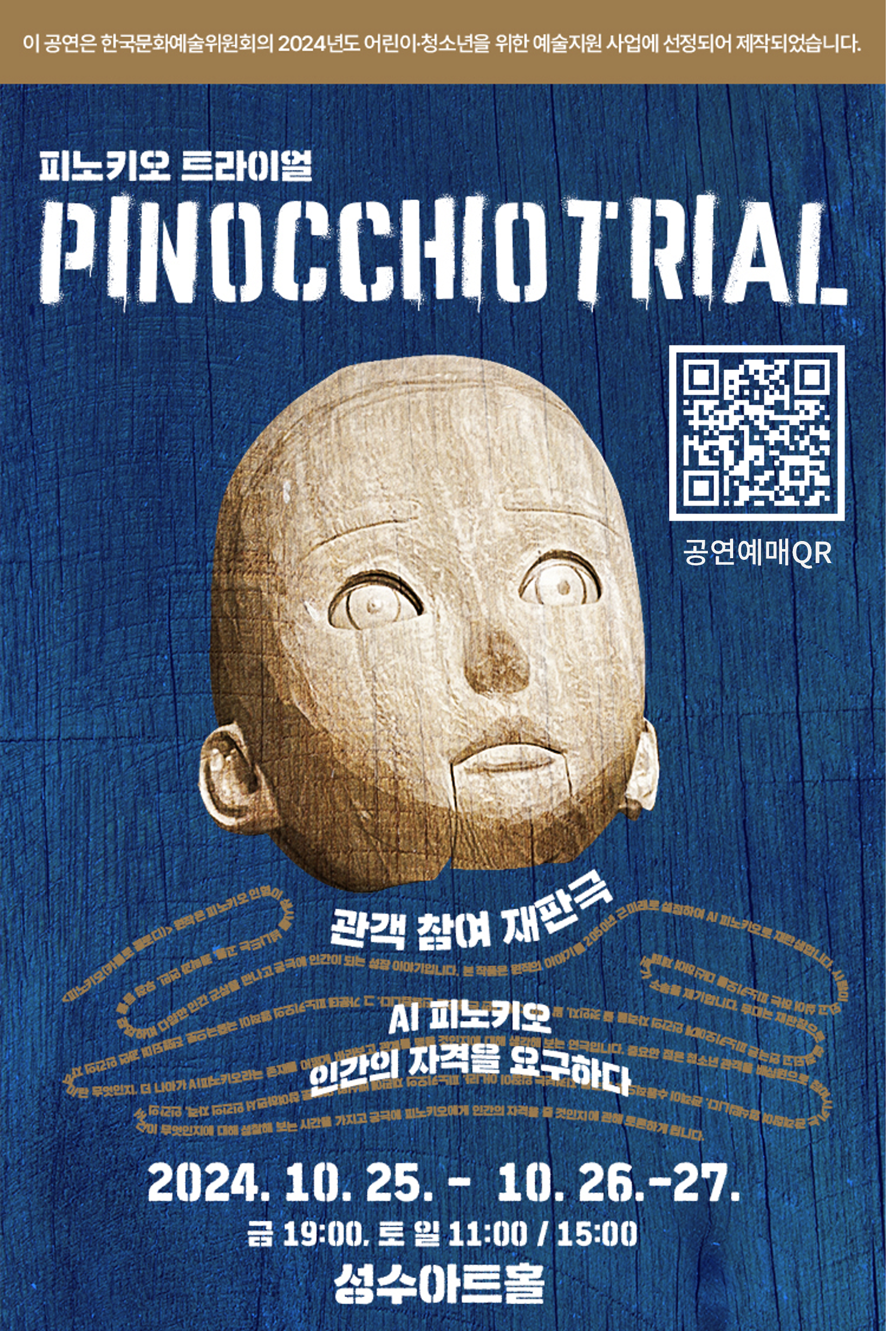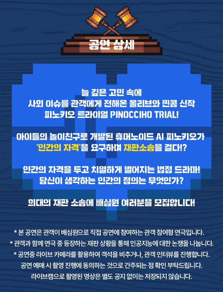관객참여 AI 재판극 <피노키오 트라이얼 PINOCCHIO TRIAL>이 곧 성수아트홀에서 초연됩니다. 💌