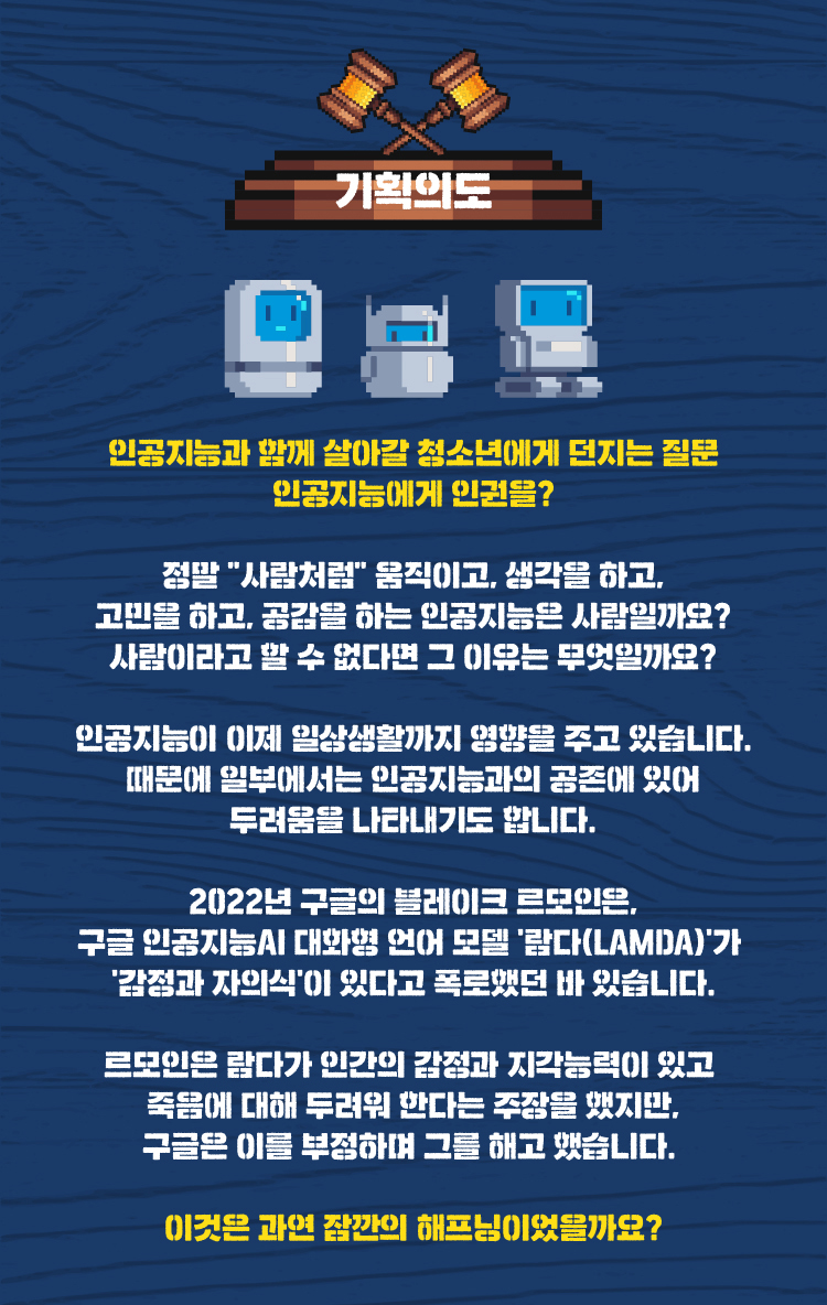 ⭐ 관객과 함께 연극 중 등장하는 재판 상황을 통해 인공지능에 대한 논쟁을 나눕니다.