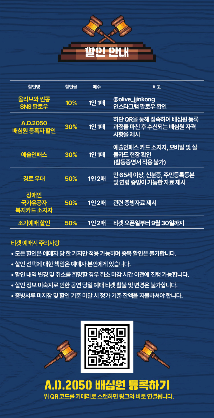⭐️ 관람 전 전송드린 ”배심원 등록FORM”을 개별 제출해주시기 바랍니다. 추후 배심원 성향테스트 등 재밌는 시도를 통해 배심원등록증 발급이 진행됩니다!