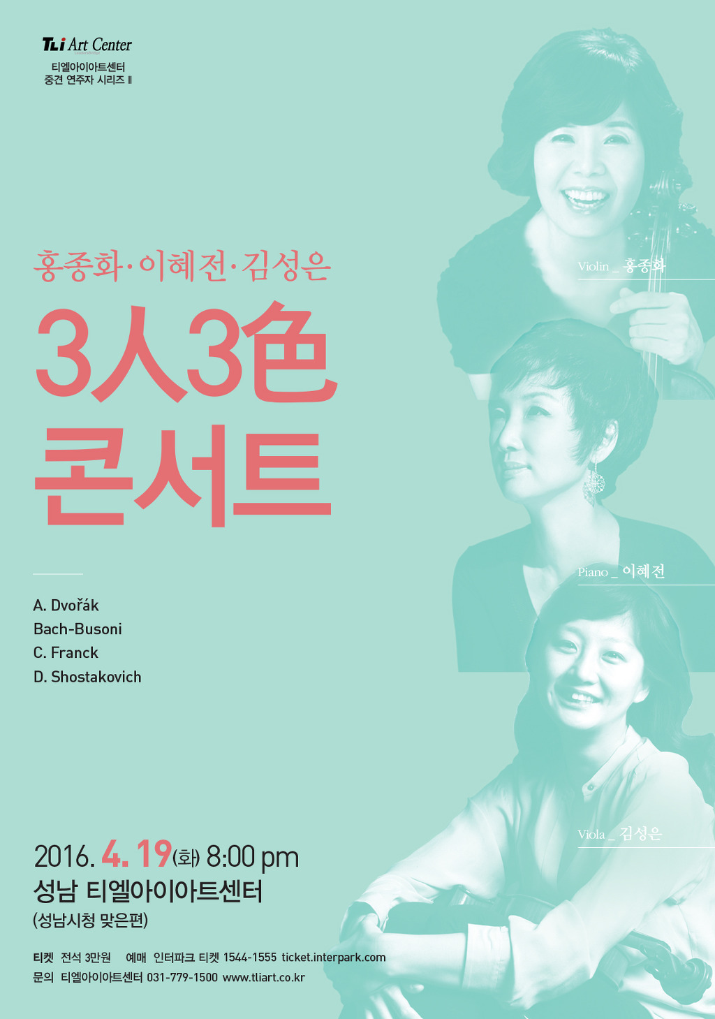 [성남 티엘아이아트센터] 중견 연주자 시리즈 <피호영 바이올린 독주회>, 홍종화/이혜전/김성은 <3인3색> 작성자티엘아이 아트센터|작성시간16.03.16|조회수12 목록 댓글 0 글자크기 작게가 글자크기 크게가 다음검색 현재 게시글 추가 기능 열기 북마크 공유하기 신고 센터로 신고 댓글 댓글 0 댓글쓰기 답글쓰기 댓글 리스트