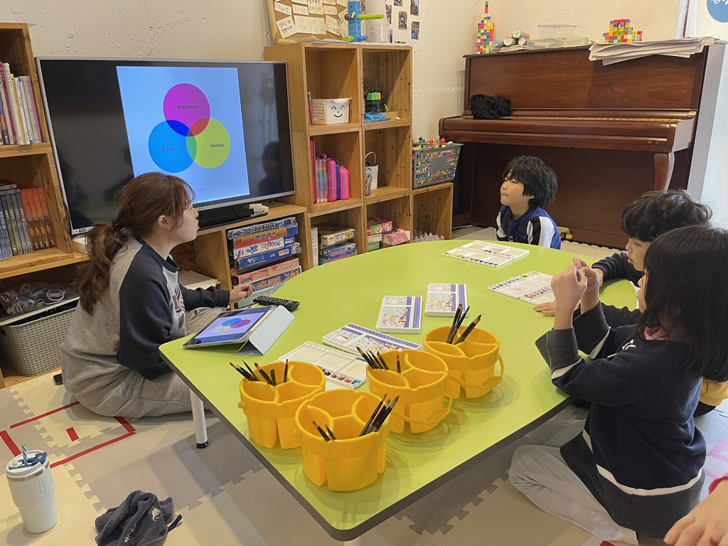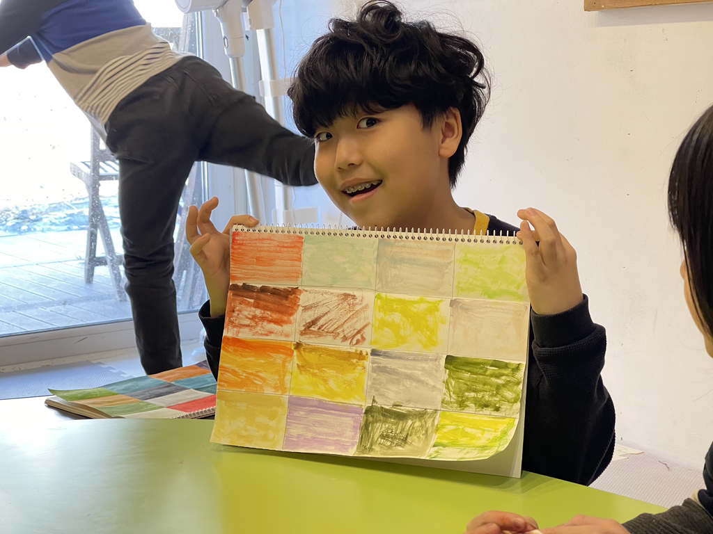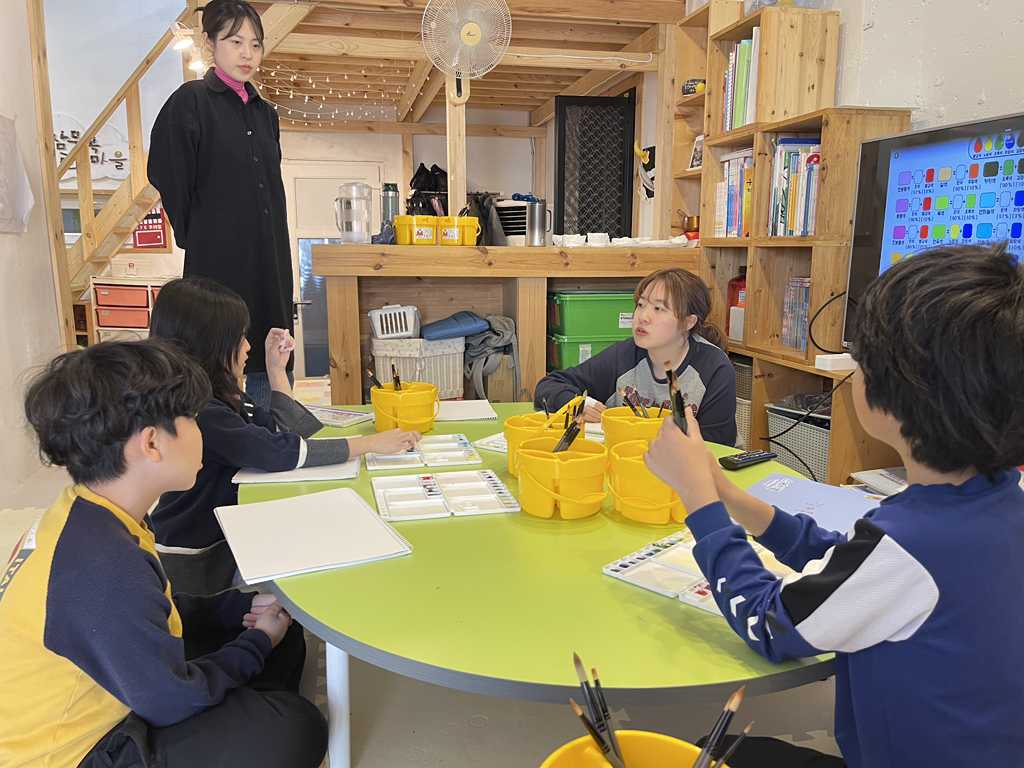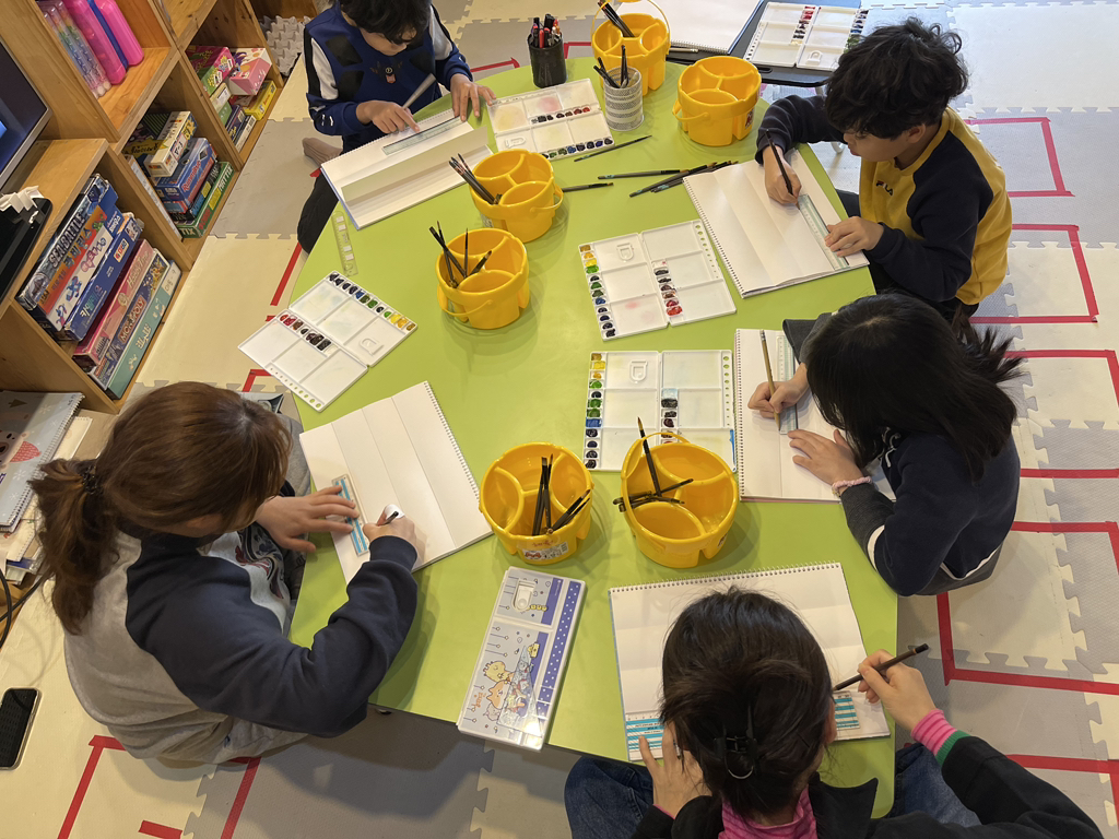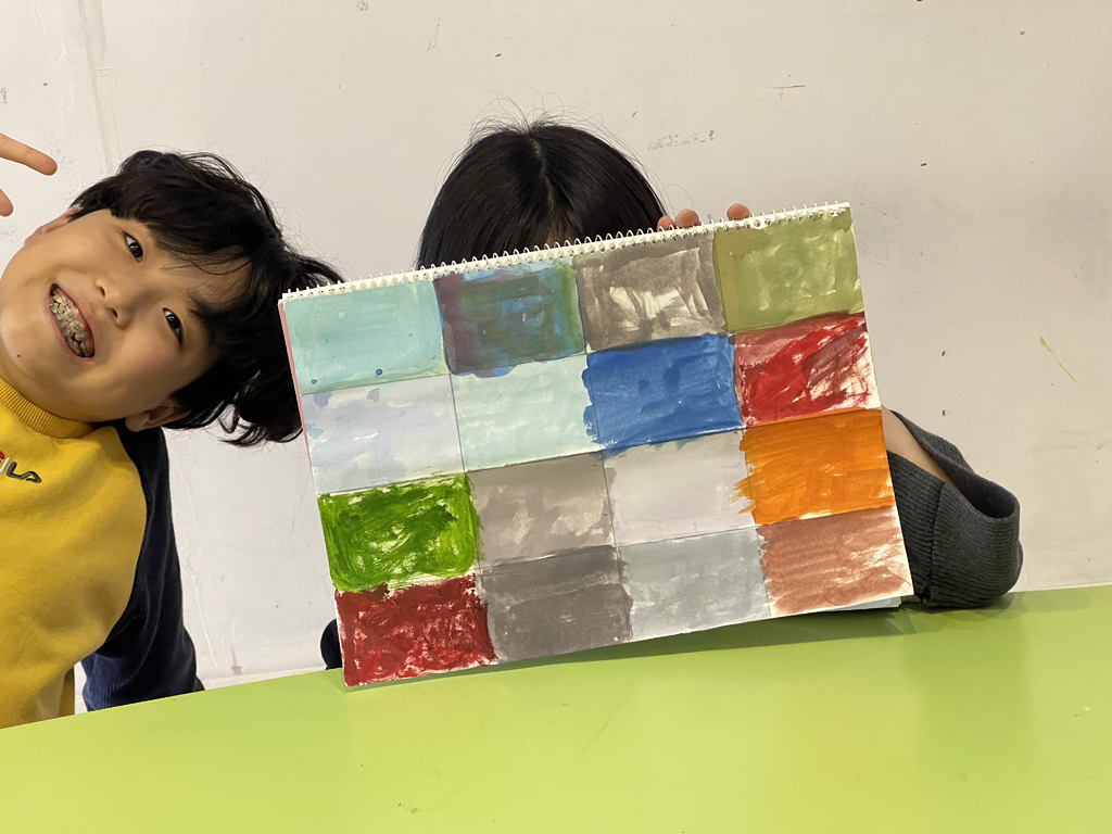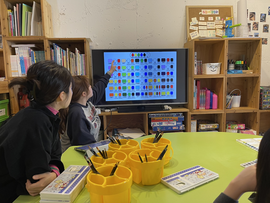 물감으로 직접 색을 섞어보며 여러 가지 색을 만들어 보는 수업을 해 보았습니다.