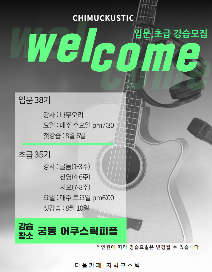 * 초급반은 입문 과정보다'는' 상위 클래스로 어느정도 기타를 접해보신 분들께 추천드립니다.