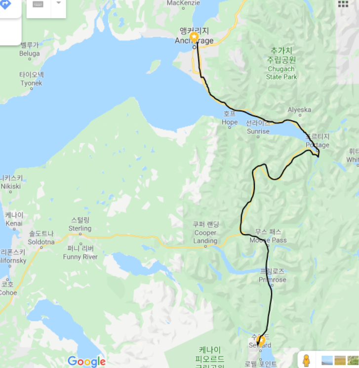 앵커리지까지만 가시는군요 스케쥴이 된다면 앵거리지에서 페어뱅크스로 북쪽으로 가다가 디날리공원도 있고 페어뱅크스 위에 치나온천도 좋은데요
