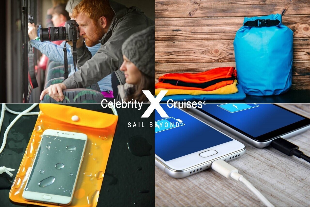 카메라, 쌍안경, 선크림, 방수백, 백팩, 휴대폰 드라이백, 휴대폰 충전기, 보조 배터리,
