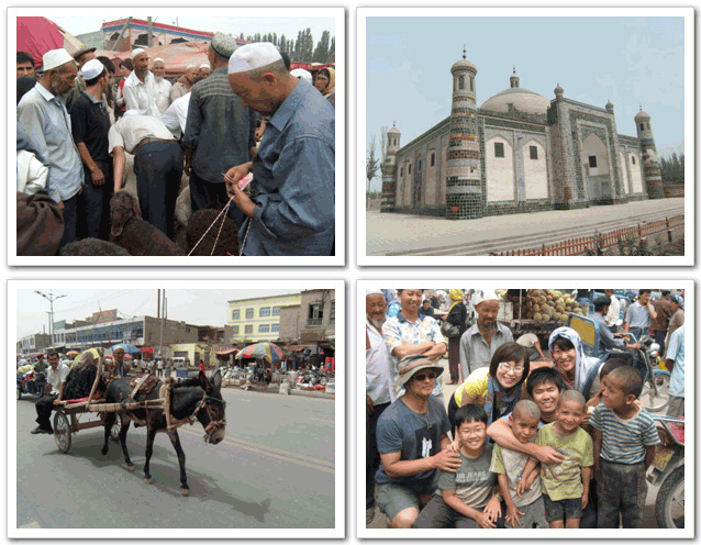 | 호텔 조식 후 ▶호탄 출발 - 예청 등의 마을을 거쳐가며 카슈가 도착 (약 490 km) ▶티벳으로 이어지는 공로의 작은 마을"예청" ▶칭기스칸의 침략에 의해 사라졌으나 1500년의 역사를 지닌 수수께끼의 도시"시티야 고성" 카슈가르 지역설명 중국의 신장 위구르 자치구 최서단에 위치한 도시로 고대 소륵국의 수도였으며, 실크로드의 요충지이자 이슬람의 거점도시입니다. ▶아바호자묘 내에 위치 하였으며 몸에서 신비로운 향기가 났던 한 여인을 청나라 건륭황제가 아내로 맞이 하였으나 끝까지 수청을 거부하며 29세에 죽음을 맞이하였던 향비를 기리기 위한 무덤. “향비묘” ▶우리나라말로 아이티카르 청진사원이라고 불리우며 중국에서 가장 큰 이슬람 사원으로 1442년에 지어졌던 곳. “에티카르모스크(청진사)” |