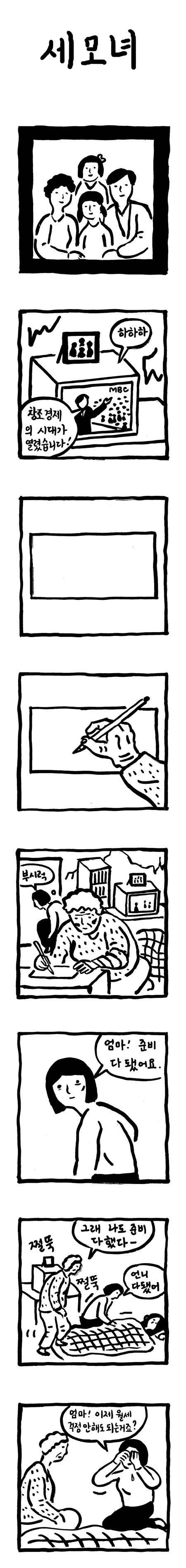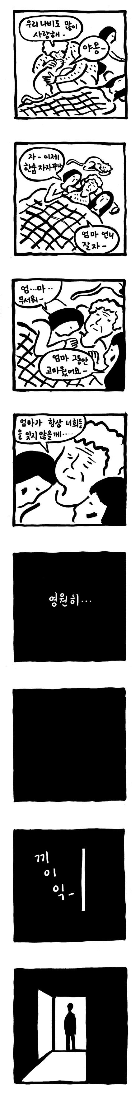 [스크랩] 만화- 세모녀 -ppuu21.khan.kr 작성자안정훈|작성시간14.03.03|조회수260 목록 댓글 4 글자크기 작게가 글자크기 크게가 만화- 세모녀 만화 그리면서 울어보긴 참 오랜만입니다. 삼가고인의 명복을 빕니다. 부디 그곳에선 행복하시길..만화- 세모녀 http://ppuu21.khan.kr/416 다음검색 스크랩 원문 : nothing 현재 게시글 추가 기능 열기 북마크 공유하기 신고 센터로 신고 댓글 댓글 4 댓글쓰기 답글쓰기 댓글 리스트 작성자이동일 | 작성시간 14.03.03 ㅜㅜ 작성자까만야크 | 작성시간 14.03.04 할말이 없네요..삼가 고인의 명복을 빌며 다른 세상에선 행복하게 잘 사시길.. 작성자잠언 | 작성시간 14.03.04 가슴이 저려옵니다 작성자김은구 | 작성시간 14.03.07 세상을 살만한 곳으로 만들어갑시다.. 댓글 전체보기