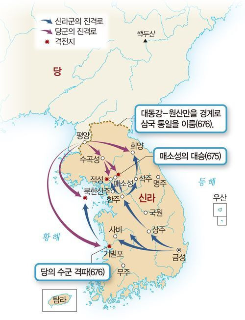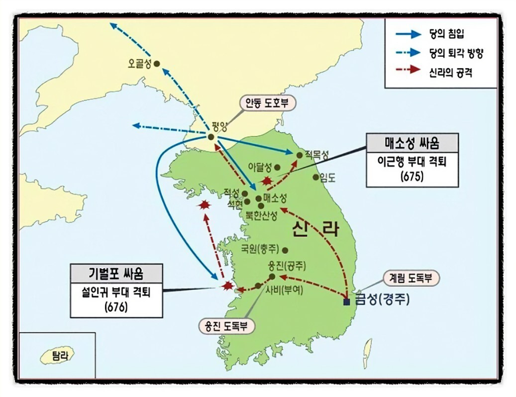 때문에..... 나당 모두의 승리로 보아야 한다는 당라 종번(唐羅 宗蕃론을 내세우기도 합니다.