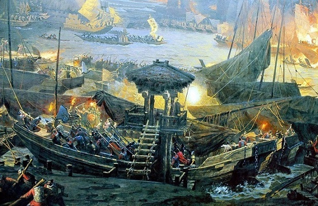 문훈 등이 반격을 가해 당군 1,400명의 수급을 확보하고전함 40여척군마 1,000필을 탈취했으니