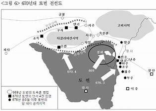 669년 토번이 천산남로(天山南路)를 급습하자, 670년 4월 설인귀(薛仁貴)가 이끄는 당의 주력군이