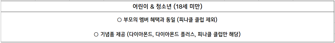 적립 포인트에 따라 '골드, 플래티늄, 에메랄드, 다이아몬드, 다이아몬드 플러스, 피나클 클럽'으로 구분됩니다.